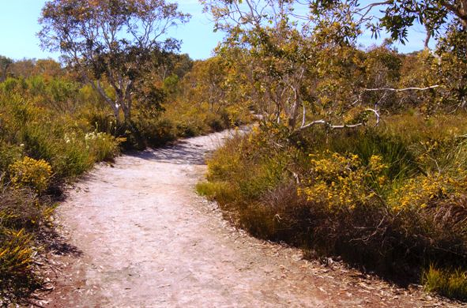This is a bushwalk on sand fire trails rising from sea level to 45 metres elevation. Bring sturdy shoes, hat and sun protection and water bottle. A good degree of mobility is required. 2 to 3 hours duration.