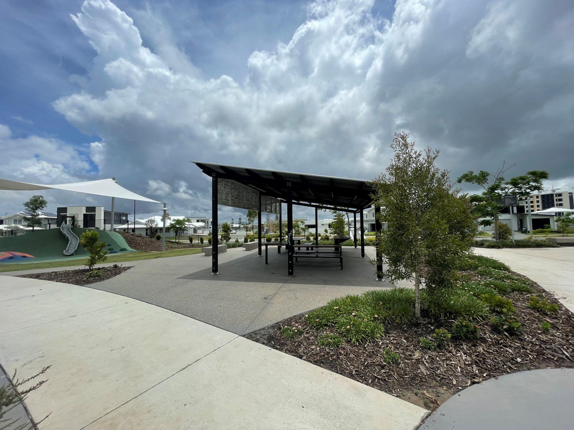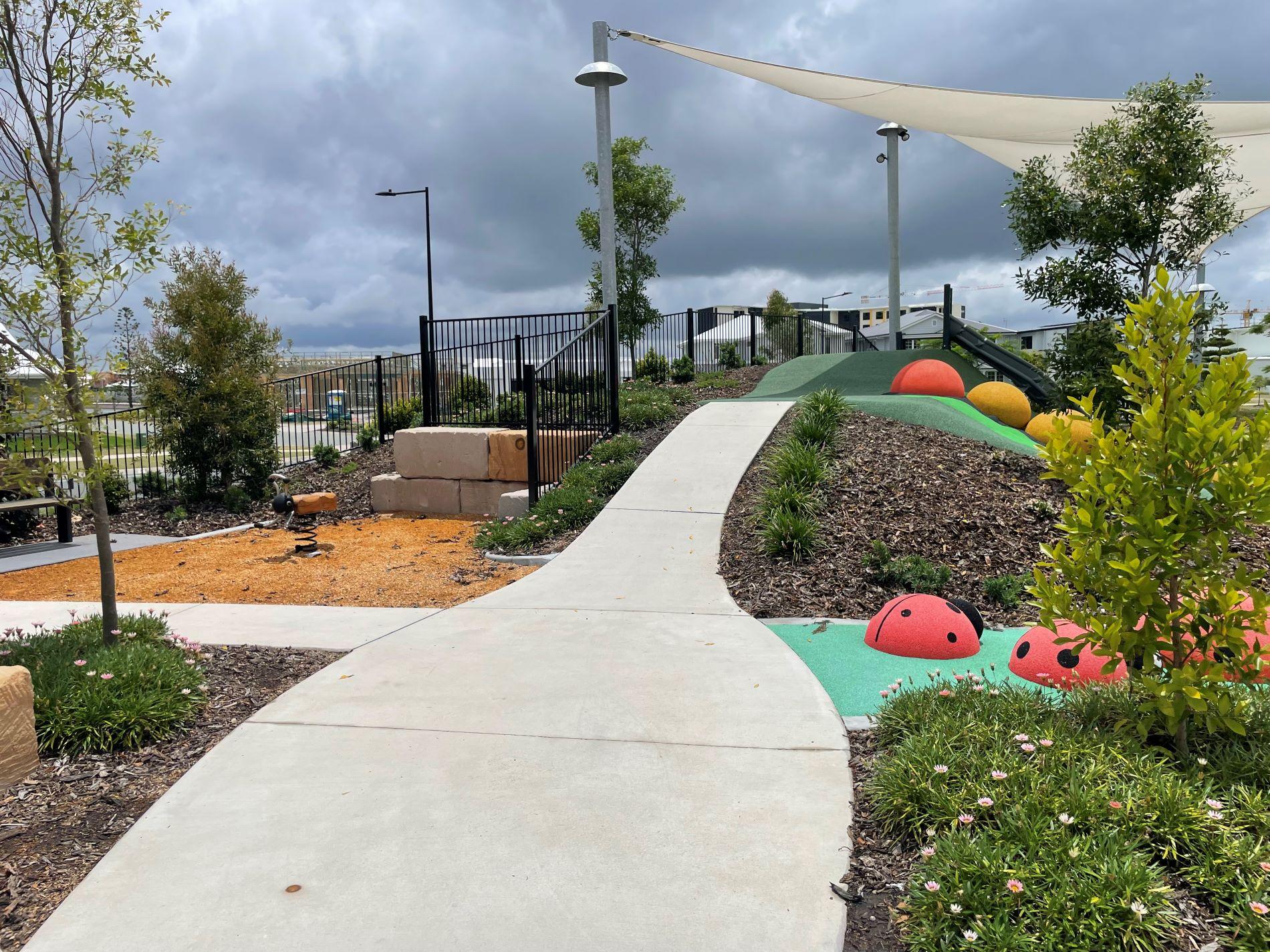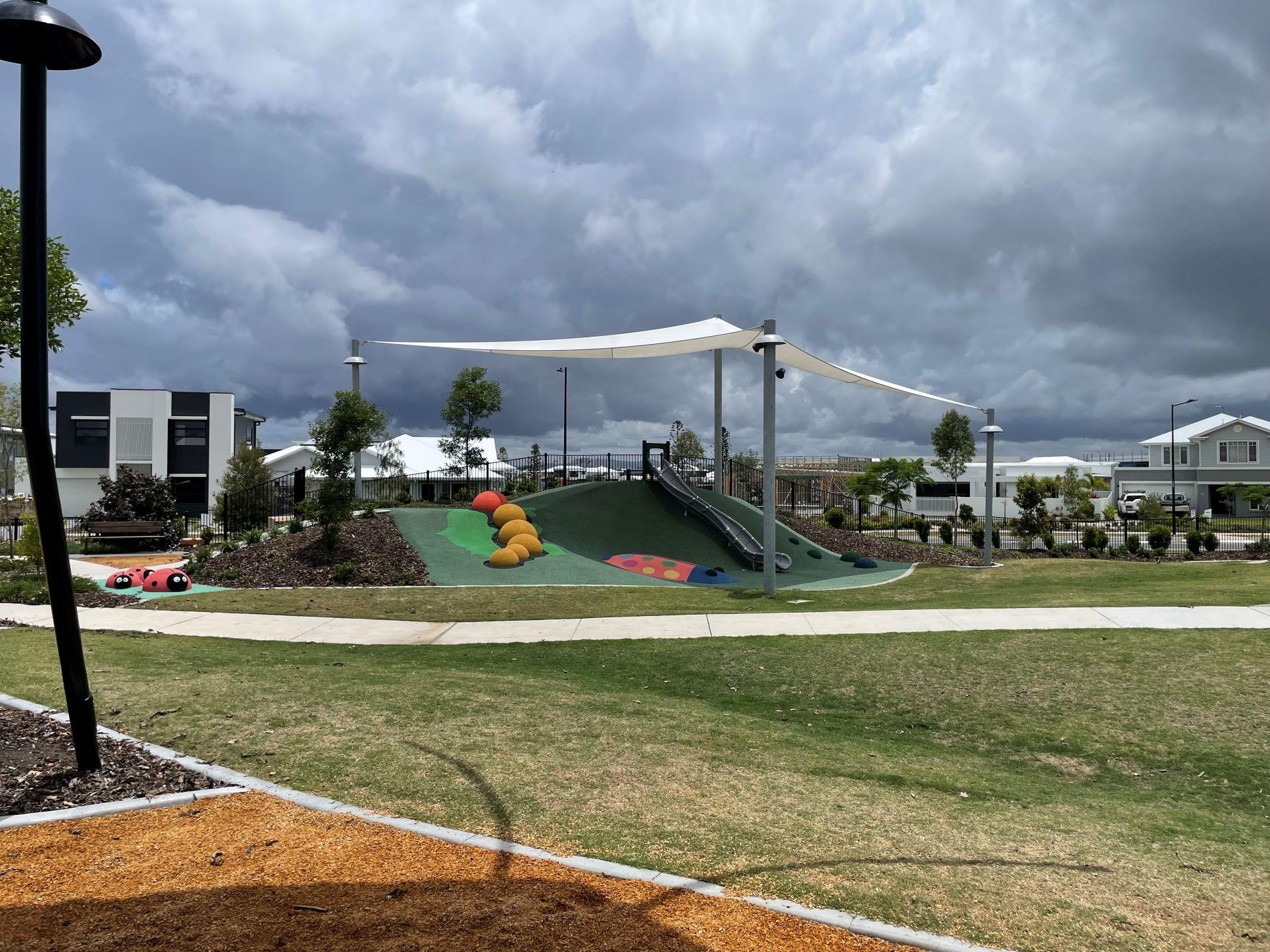 - Shade sails provided over play areas