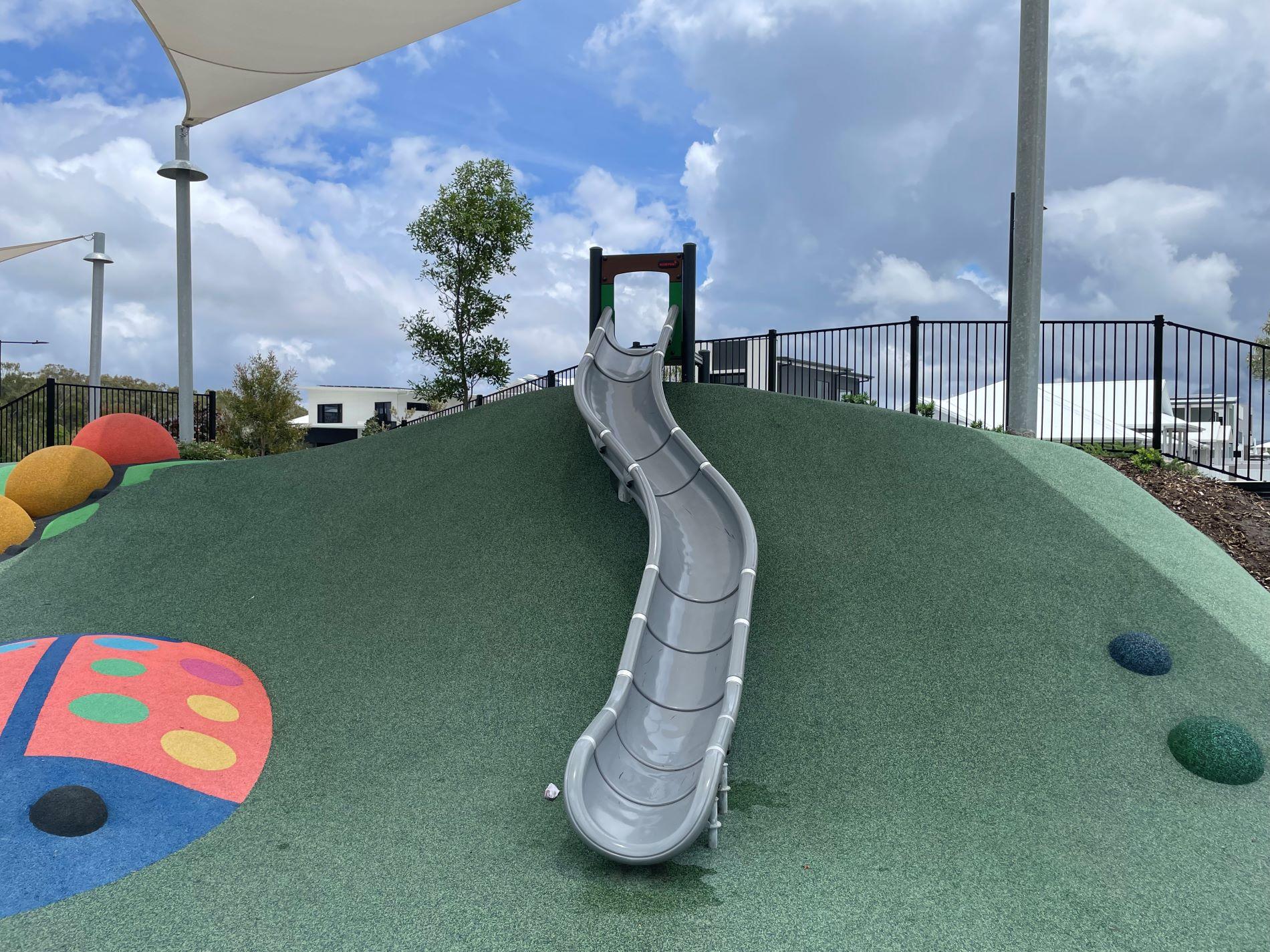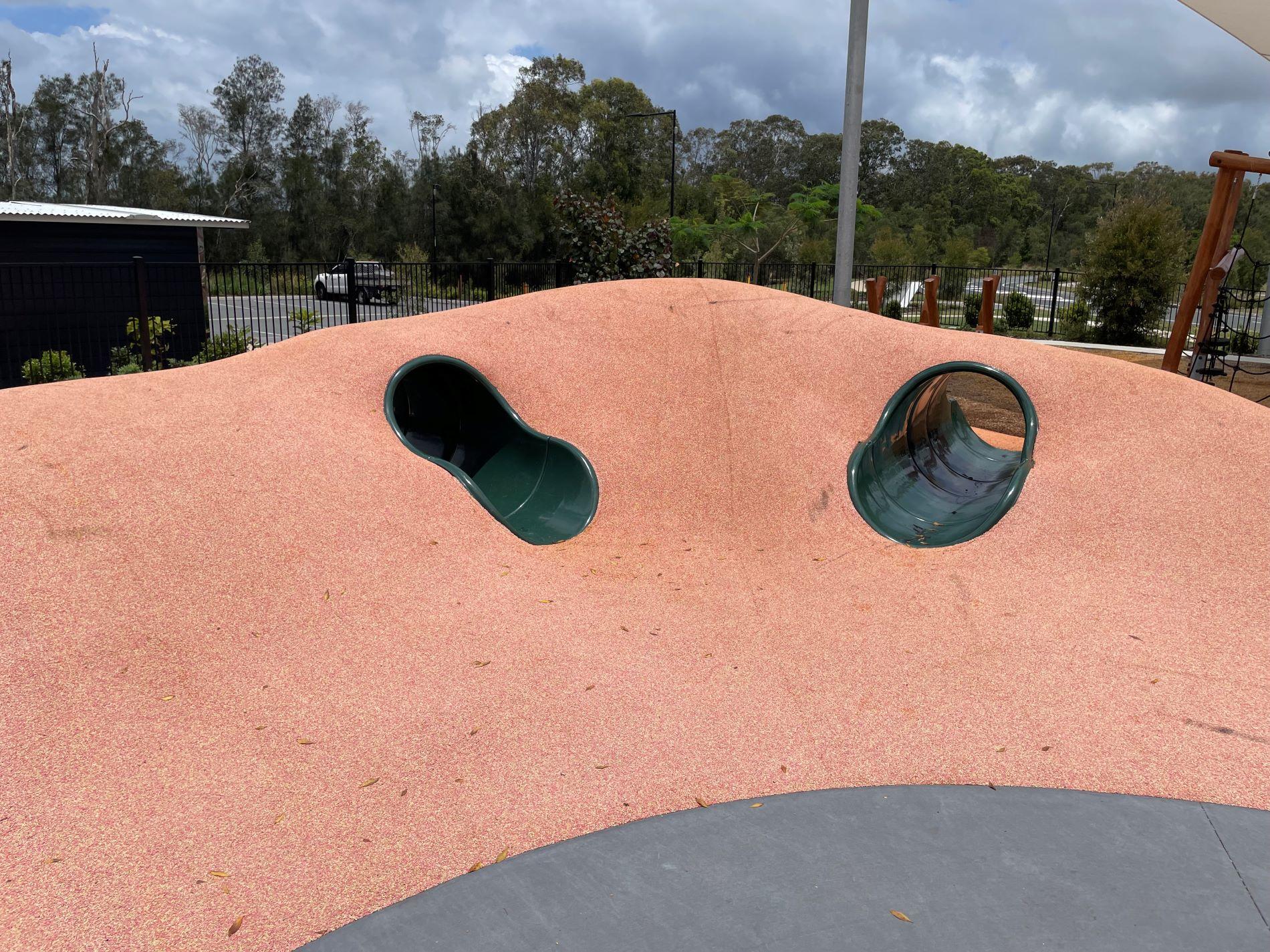 - Soft rubber surfacing with imbedded play elements (ensure shoes are worn because surfaces can get very hot)