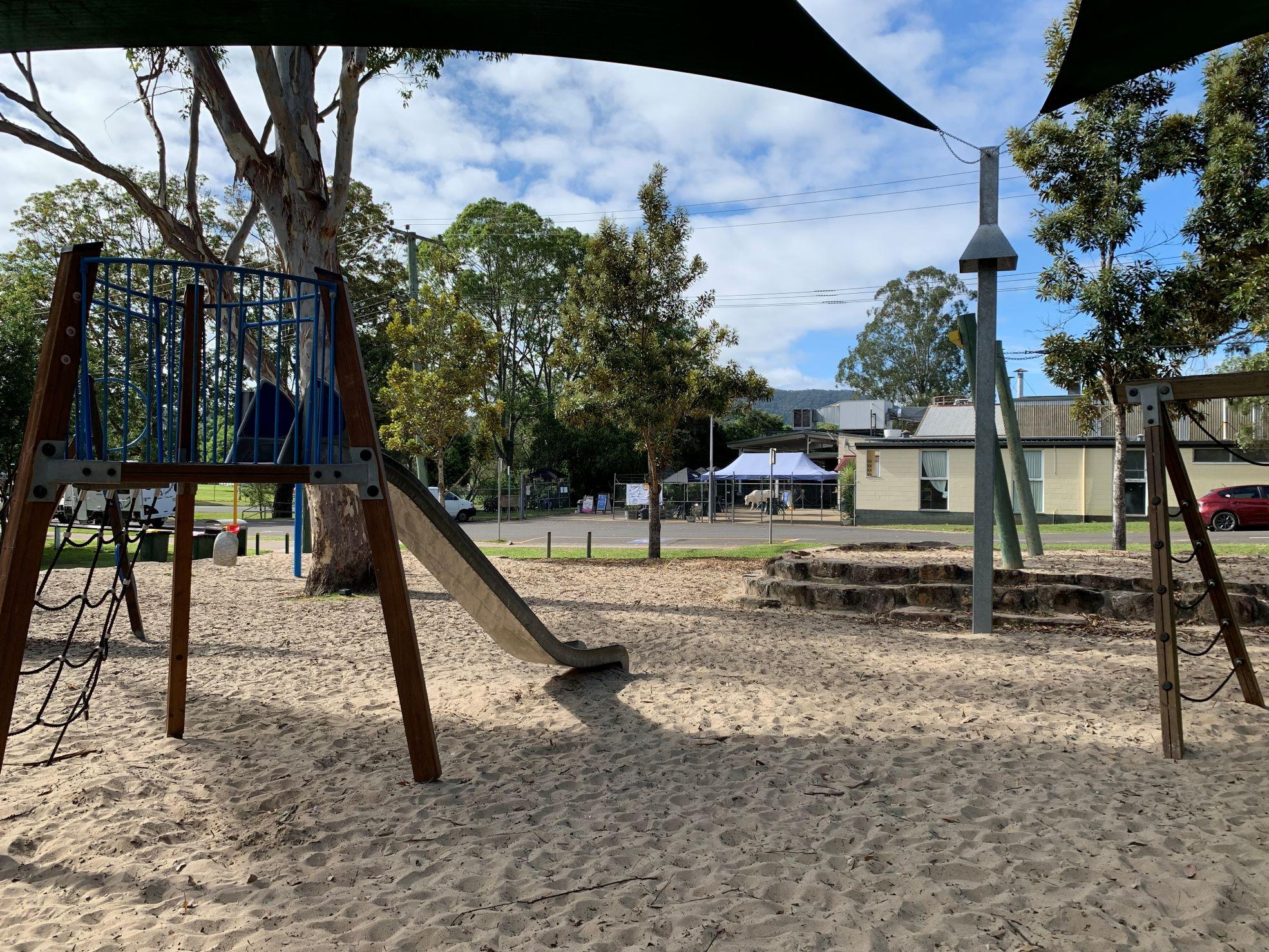 In the heart of town, this park has great amenities, including barbecues, seating and shade. The playground has a 2 deck combo unit, a curved crawl tunnel, 2 way swing, boat rocker, honeycomb climber, pedal power helicopter, slide lookout, supernova 2, swing, volocitron and a flying fox.