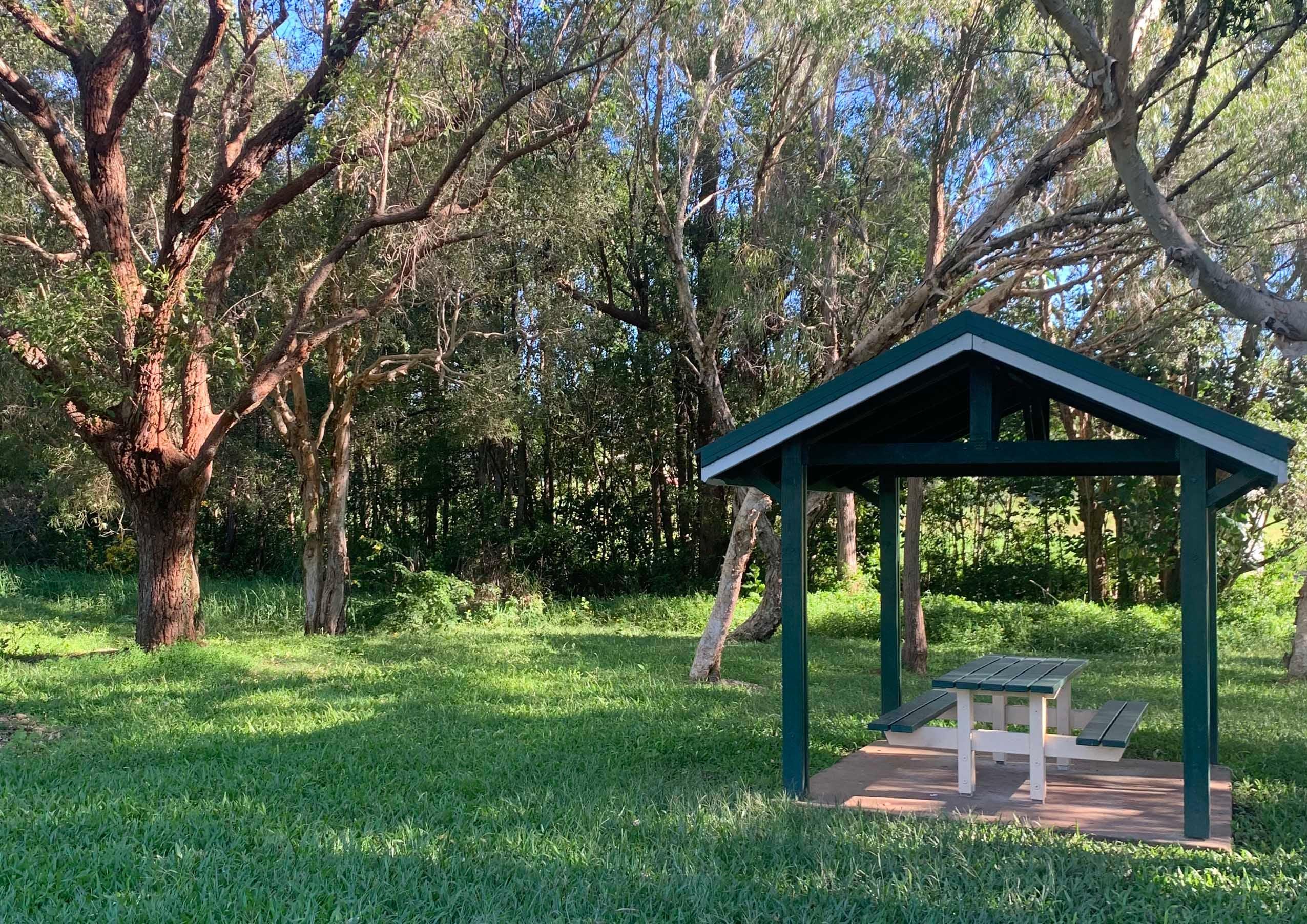 North Arm Park provides a half basketball court, a playground under natural shade as well a flying fox. There is a shelter with table and bench seating. It also provides a large open grass area to kick a ball around, natural shade, as well as off road parking. You'll also find public amenities facilities here too.