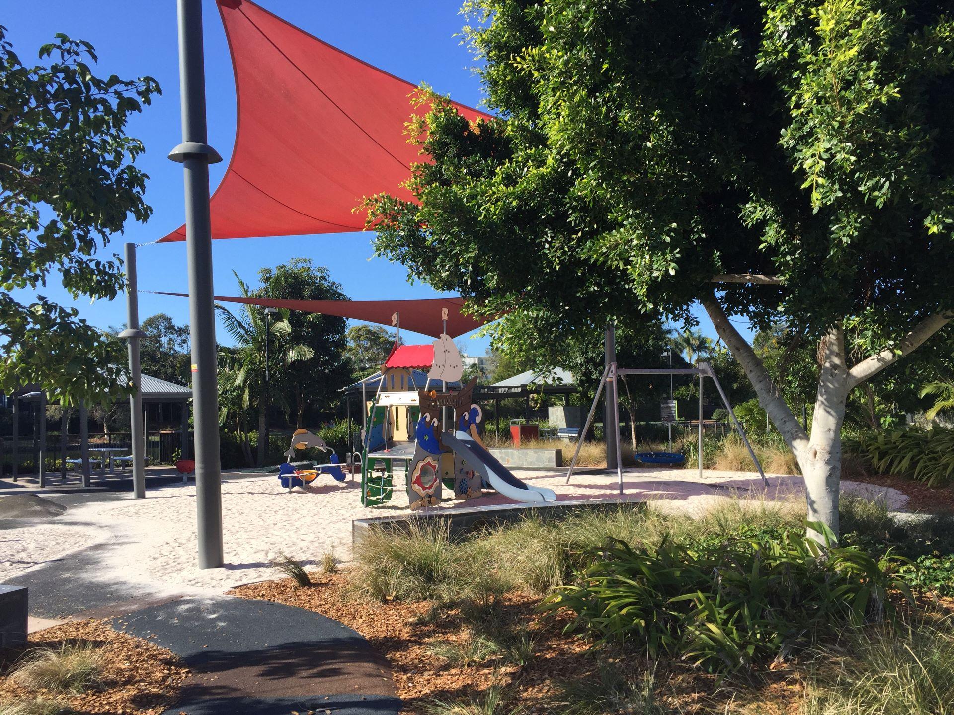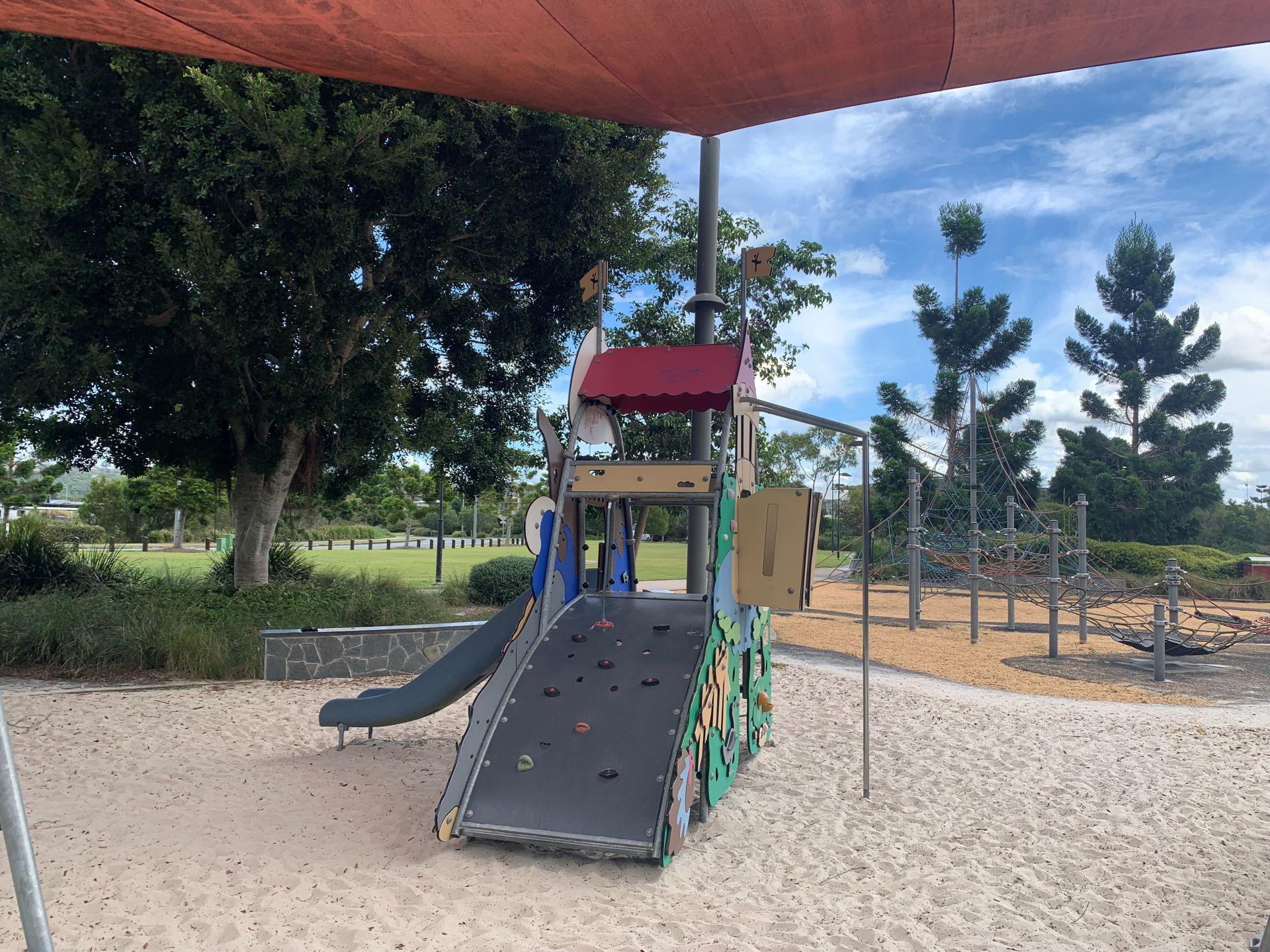 Sunshine Cove Park is a large open space with great views of Wises Farm Lake. There is off street parking and pedestrian connection pathways. The park also provides plenty of picnic and barbecue facilities on the end overlooking the lake. These facilities also offer great vantage points to watch your children enjoy the playgrounds on site. Part of which are sheltered under shade sails. The park also provides some natural shade and a large open grass area at the front of the park for kick and throw activities.