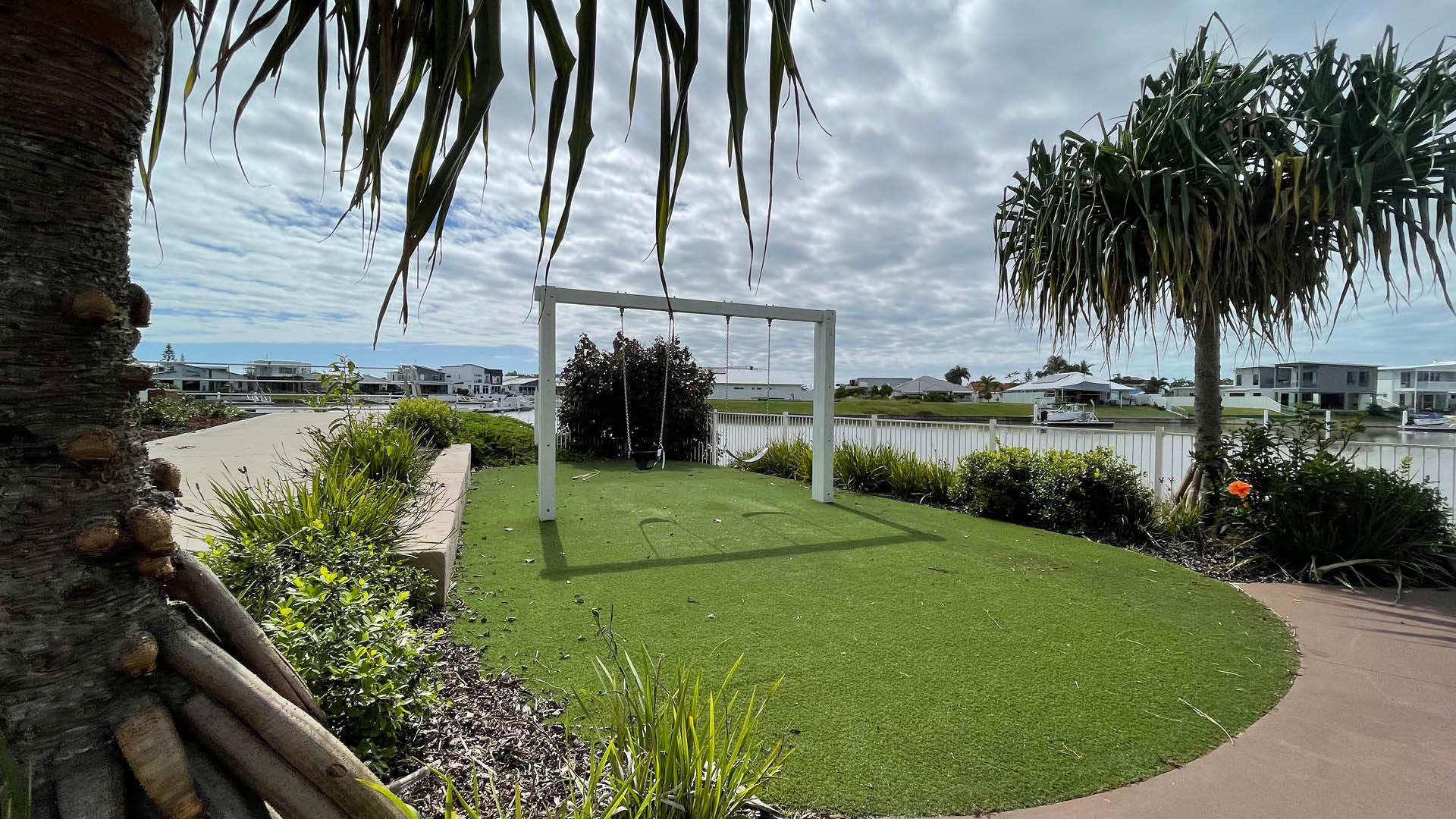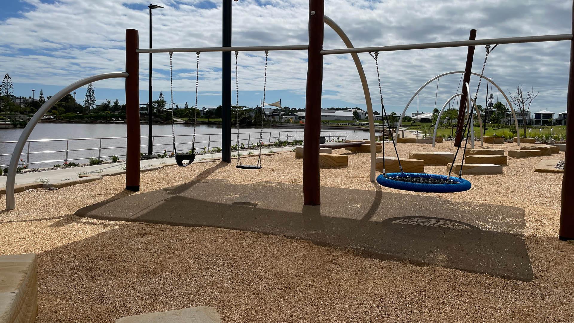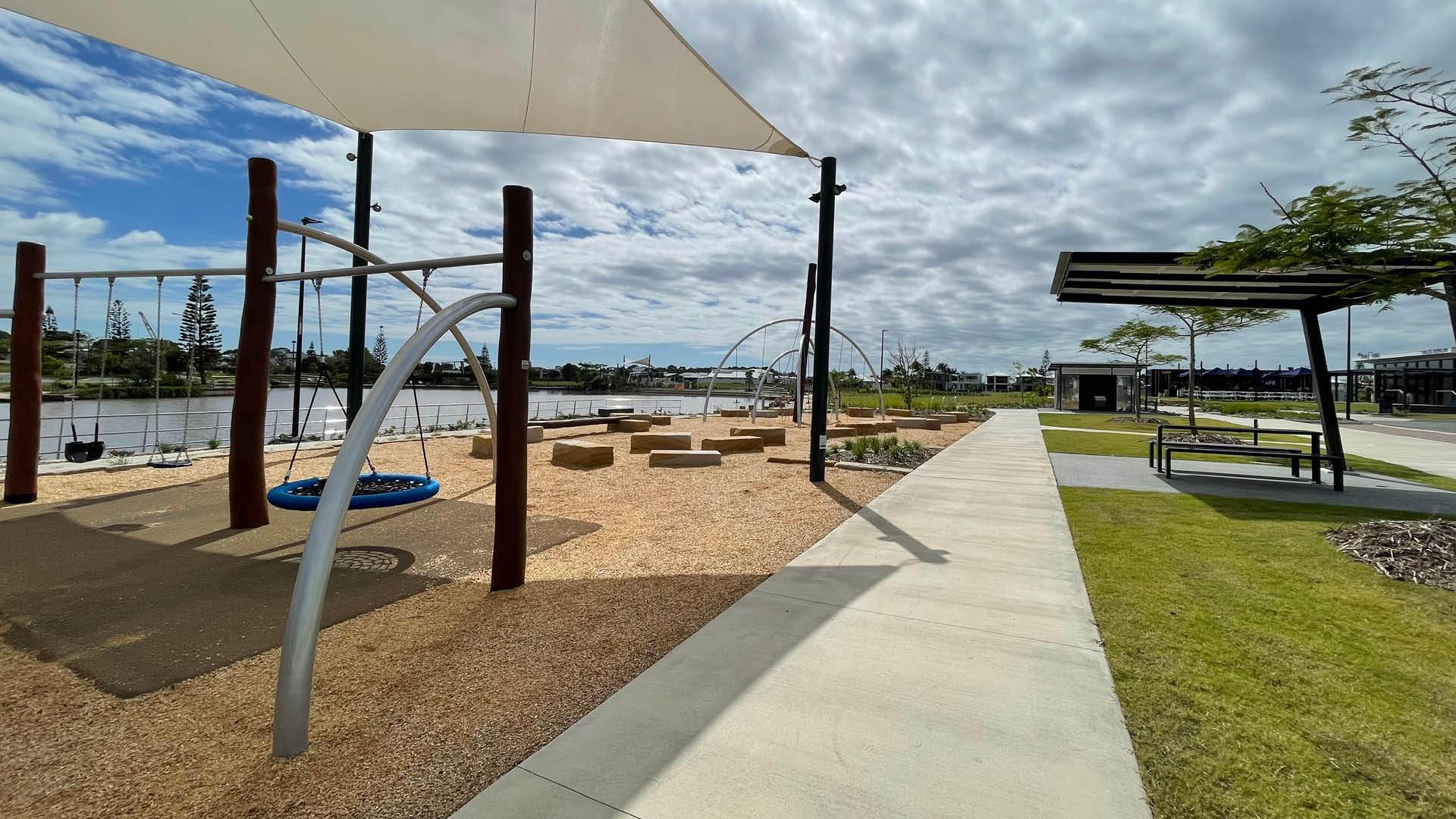 This local park is surrounded by water. It provides connecting paths to a playground, shaded picnic facilities and open grassed kick around areas with great views of the canal.