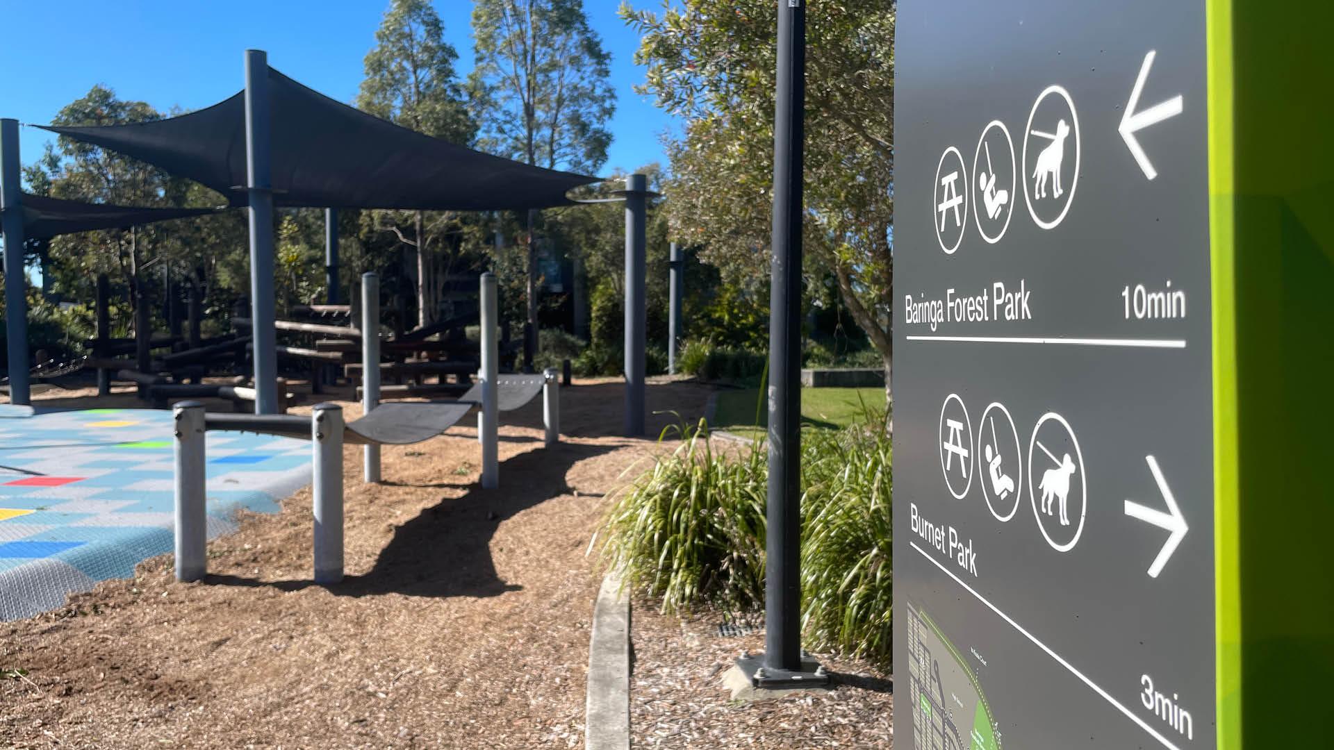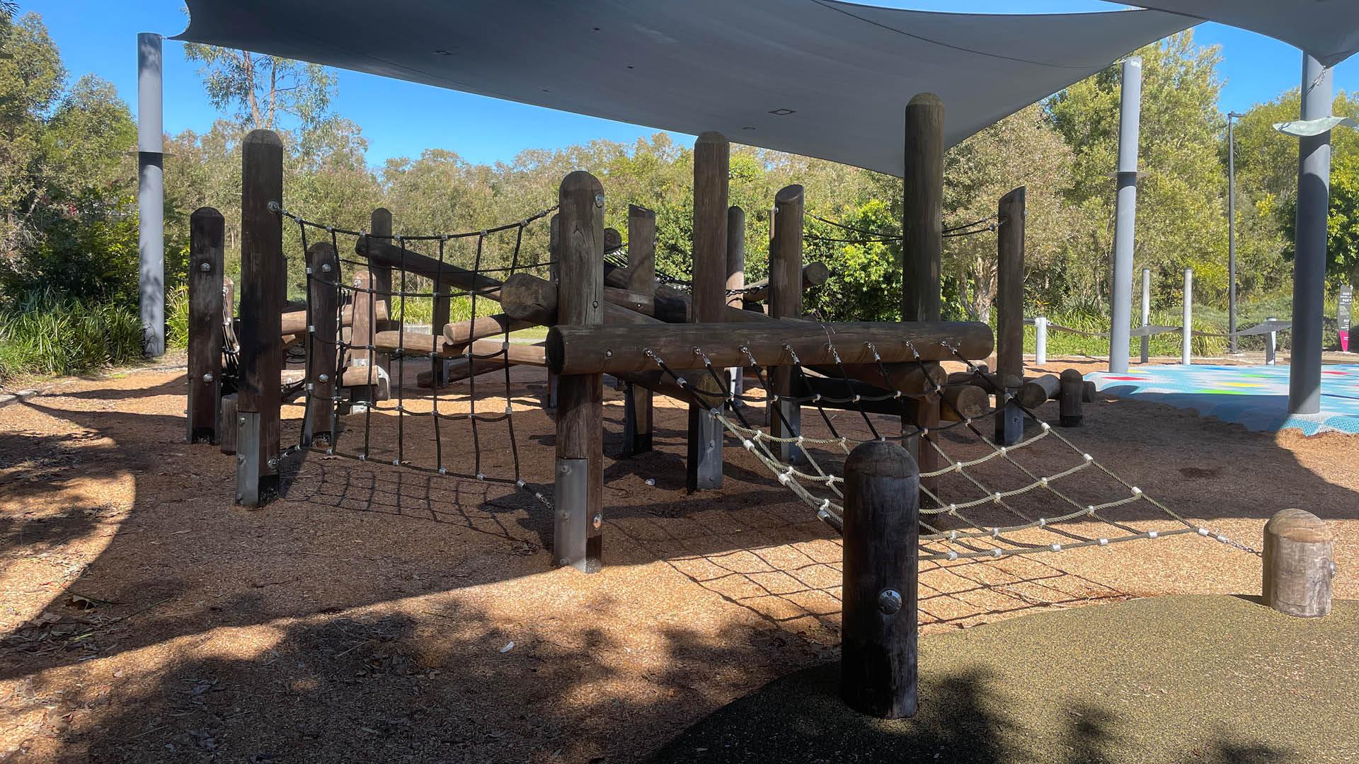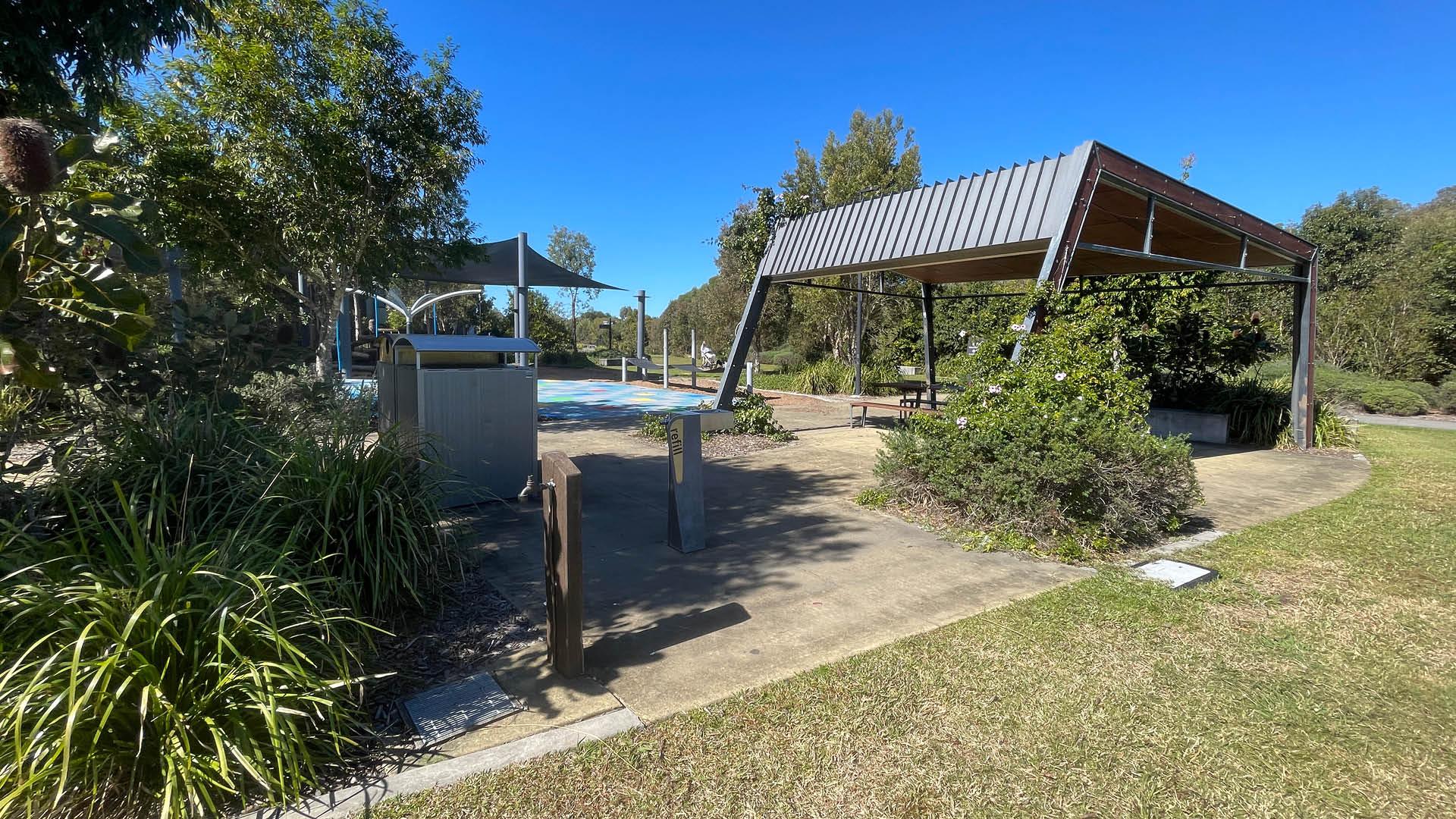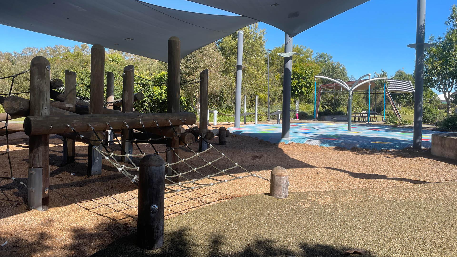 This local park provides a nature themed play area with play elements for a variety of ages. It has a lovely natural bush land backdrop with a picnic table and bench under a shelter to offer shade while you enjoy a picnic lunch.