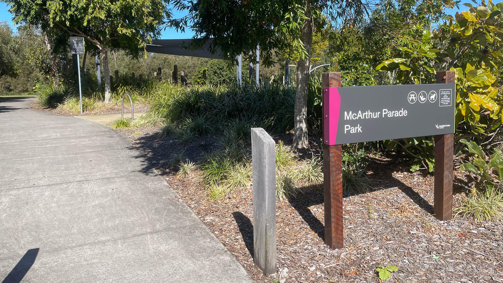 McArthur Parade Park provides a nature themed play elements, designed for a variety of ages and has a bush land backdrop. Plus it has a large grassed area with goal posts.