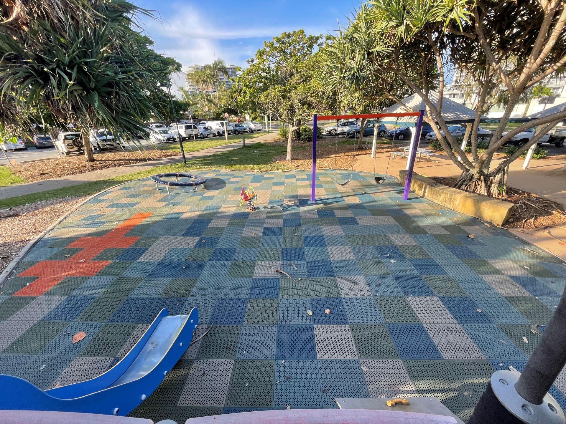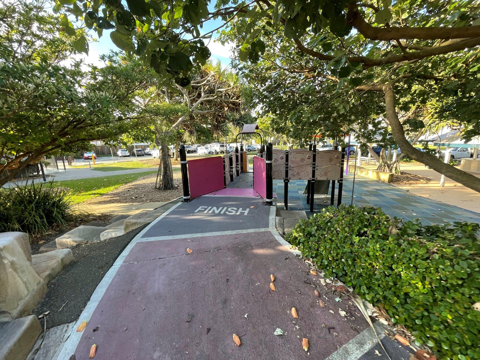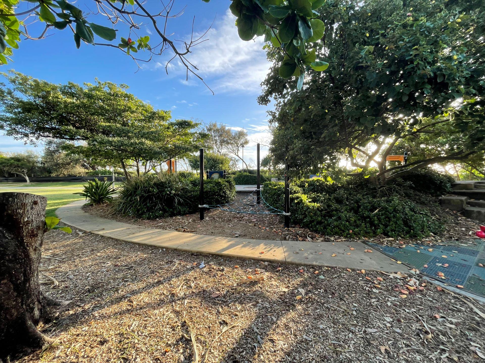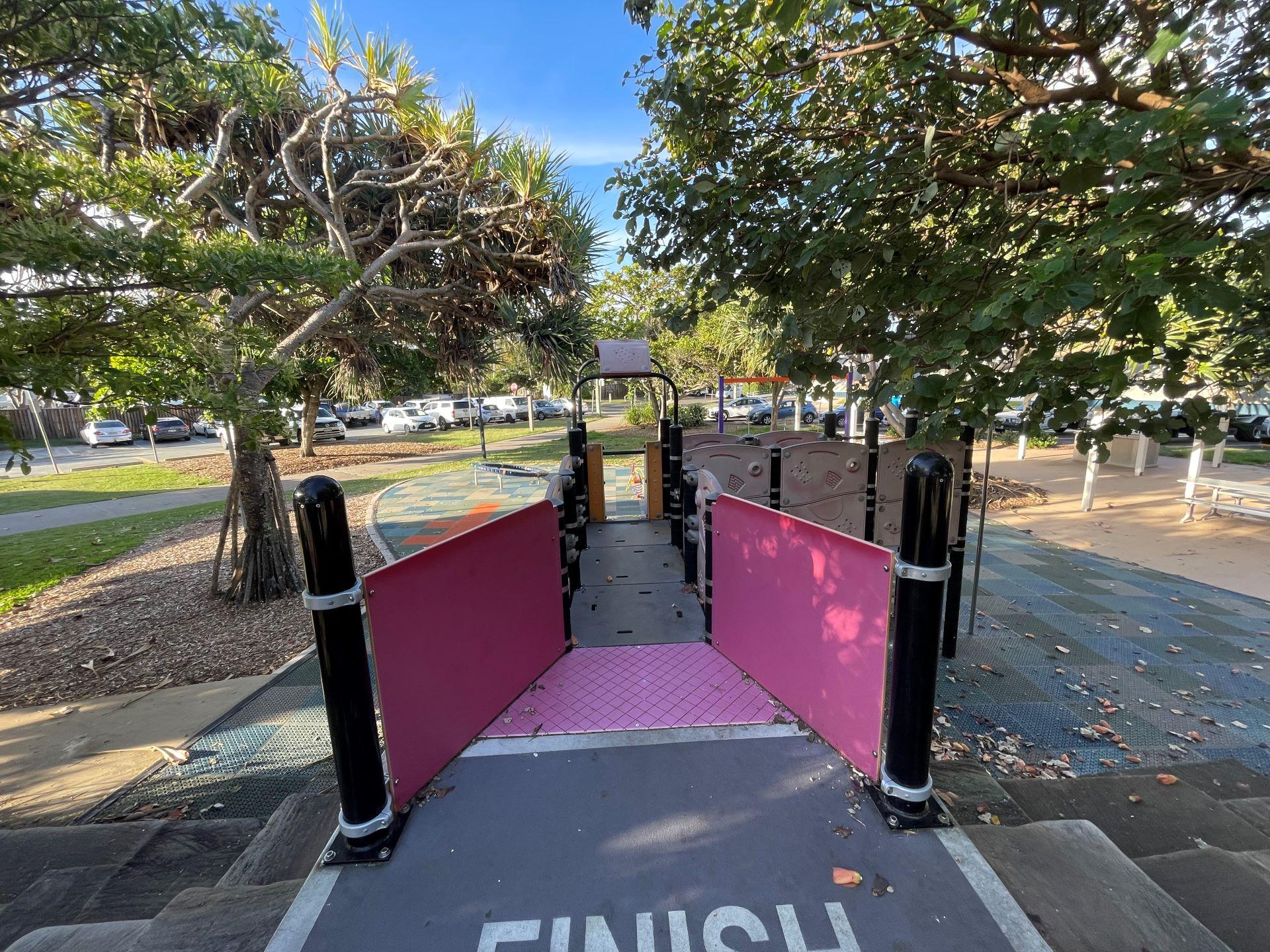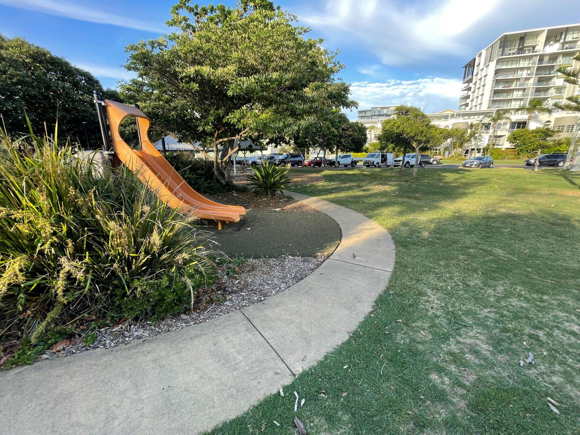 Peirce Park has plenty to offer the whole family. Located close to the Beach (Cotton Tree-Alex Foreshore Bushland Conservation Reserve). The themed 'snake and ladders' playground caters for various ages, providing a healthy selection of activities such as a slide, a net and sandstone blocks. On the other side of this you'll discover play elements under shade sails for protection from the sun. These include such elements as; a swing, fort-walkway with slide and a floor bouncer.