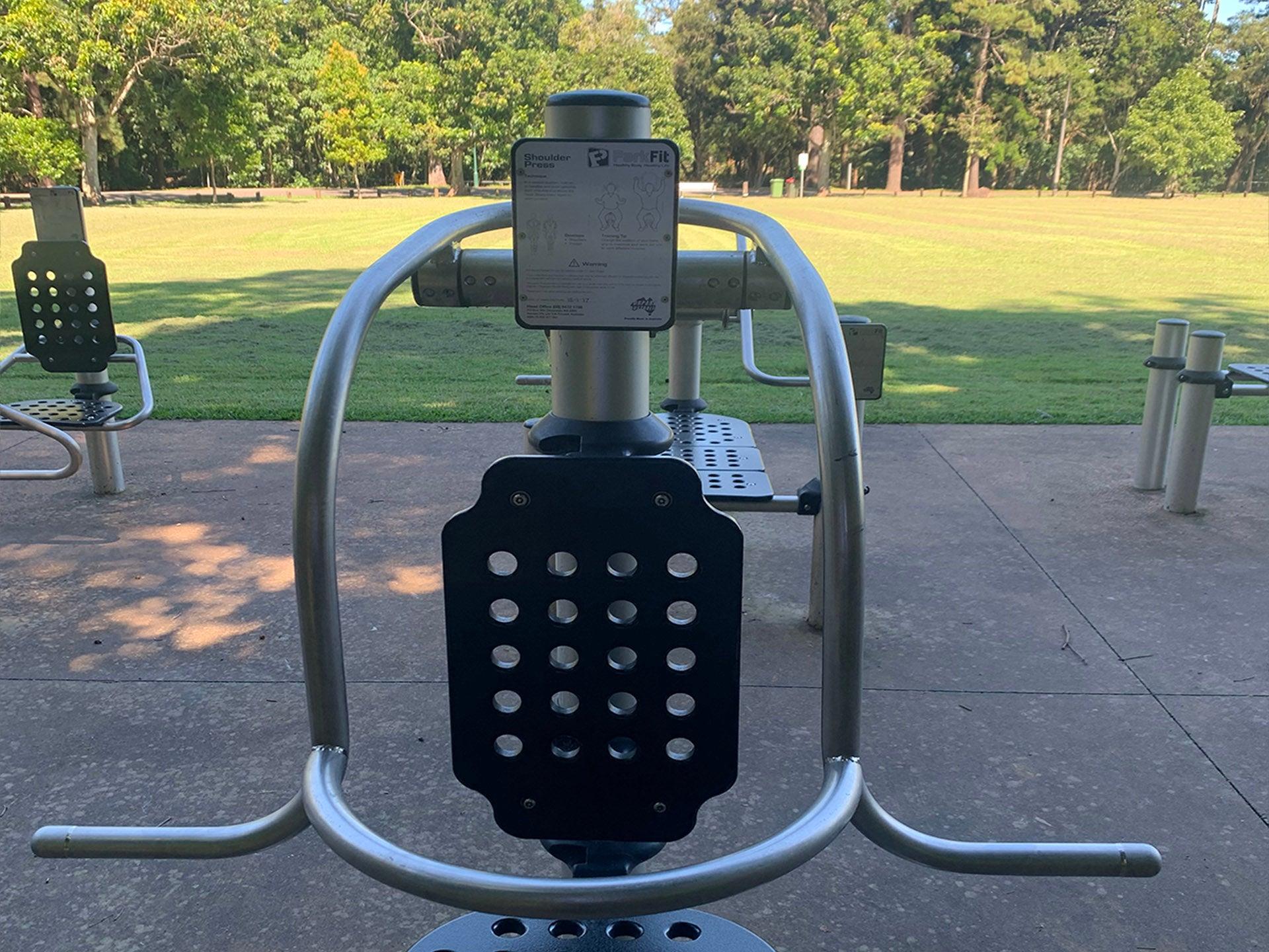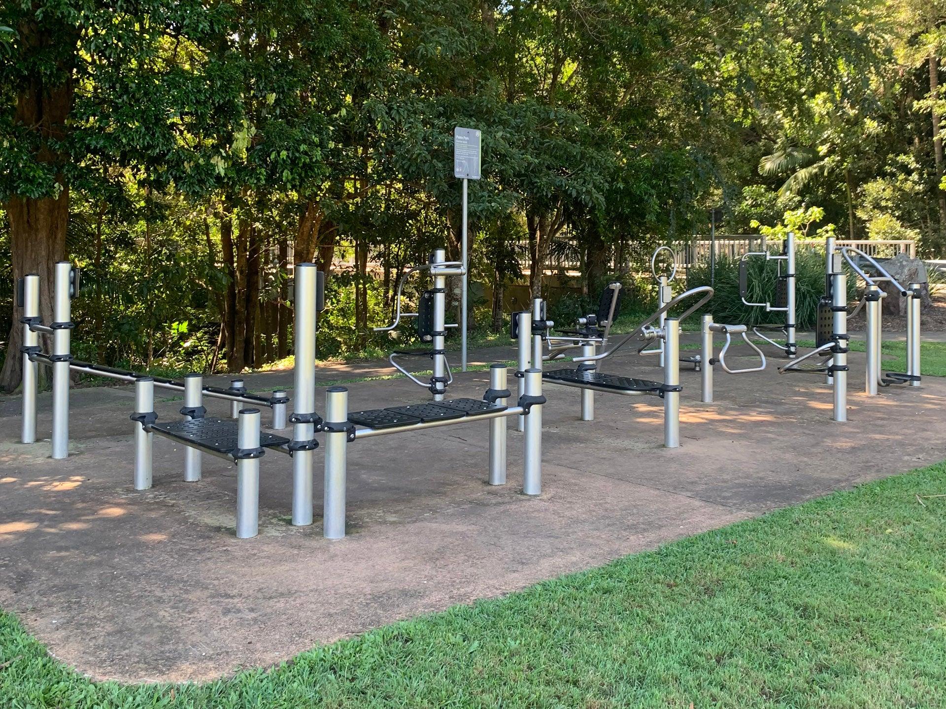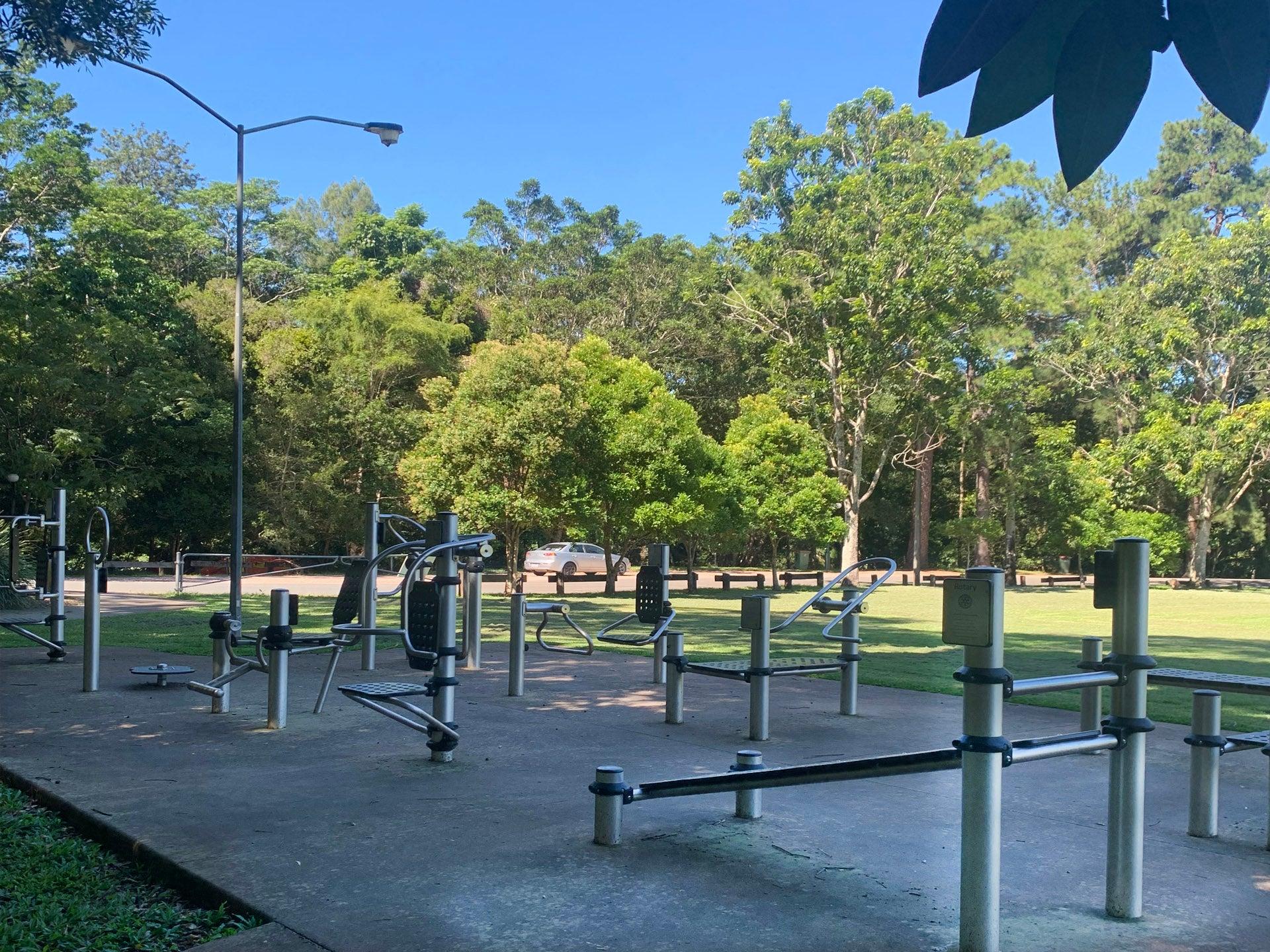 There is an exercise equipment area located on the edge alongside a shelter with bench seat as well as a little natural shade. A small skate facility is also provided and located on the other side of Elder street.
