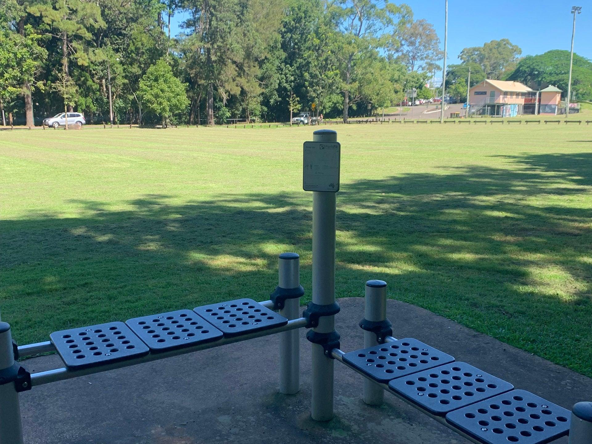 This park provides a large open grass area that is a designated dog off leash area. It also provides an exercise equipment area and a small skate park located on the other side of the park.