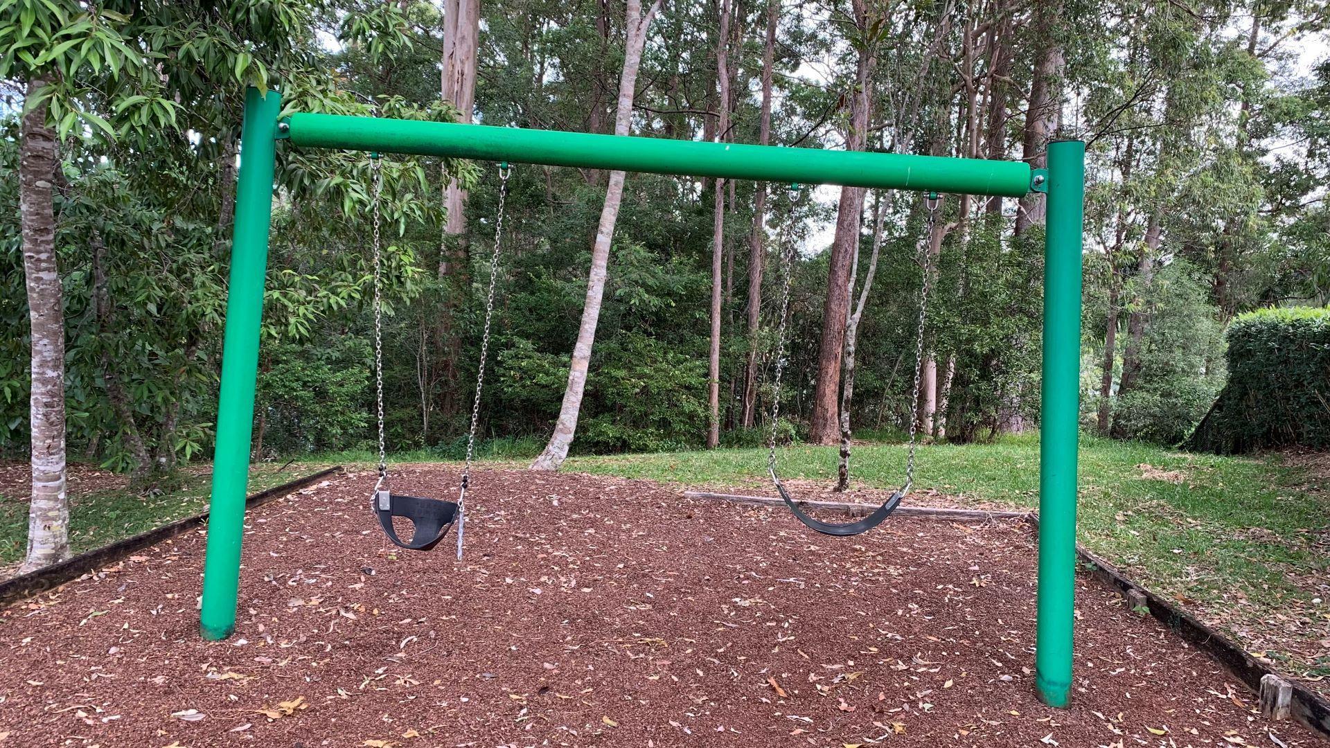 Small local park with a playground, natural shade and grassed area