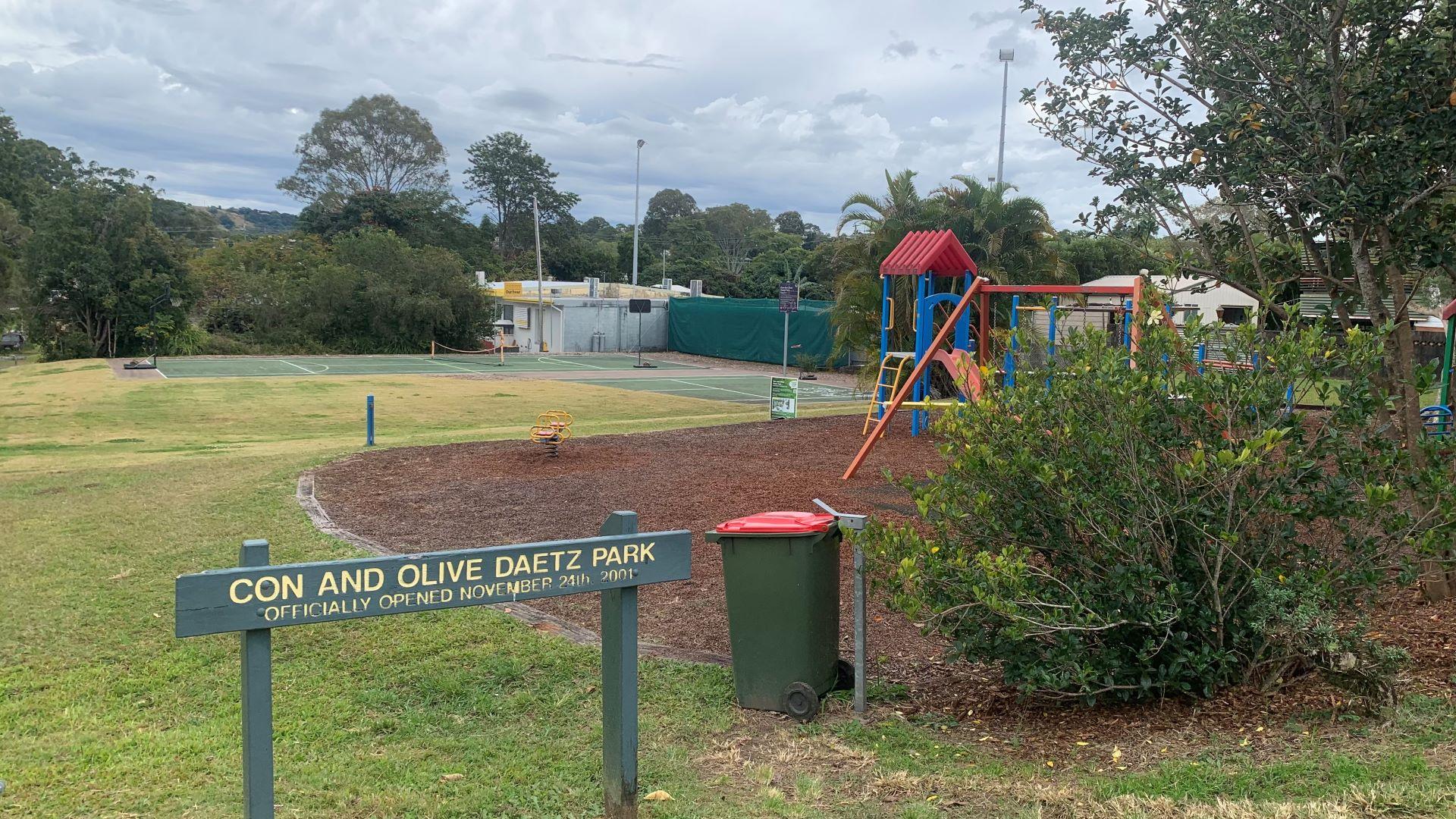 Con and Olive Daetz Park is a small neighbourhood park that provides a playground, half basketball court and a full basketball court, open grass kick and throw area and some natural shade