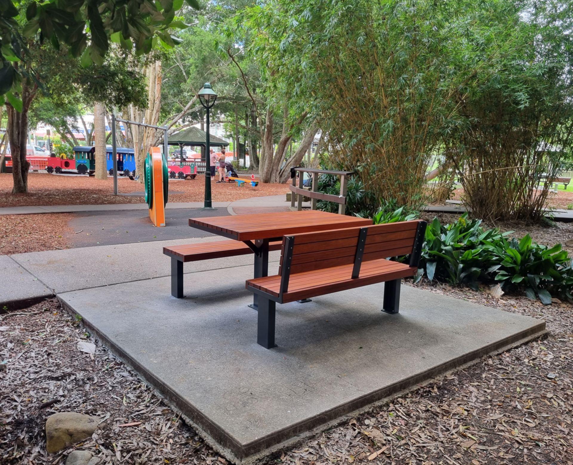 Dick Caplick Park is located beside the popular Eumundi Markets square and across the road from community shops and restaurants. It contains a children's playground with plenty of challenging equipment, a half basketball court and half netball court and open grass areas.