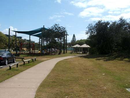 Felix Parry Park is a beachside park. It is located to the south of the Marcoola Surf Club. There is parking close by, a playground sheltered by shade sails and shelters with barbecue facilities and picnic tables.