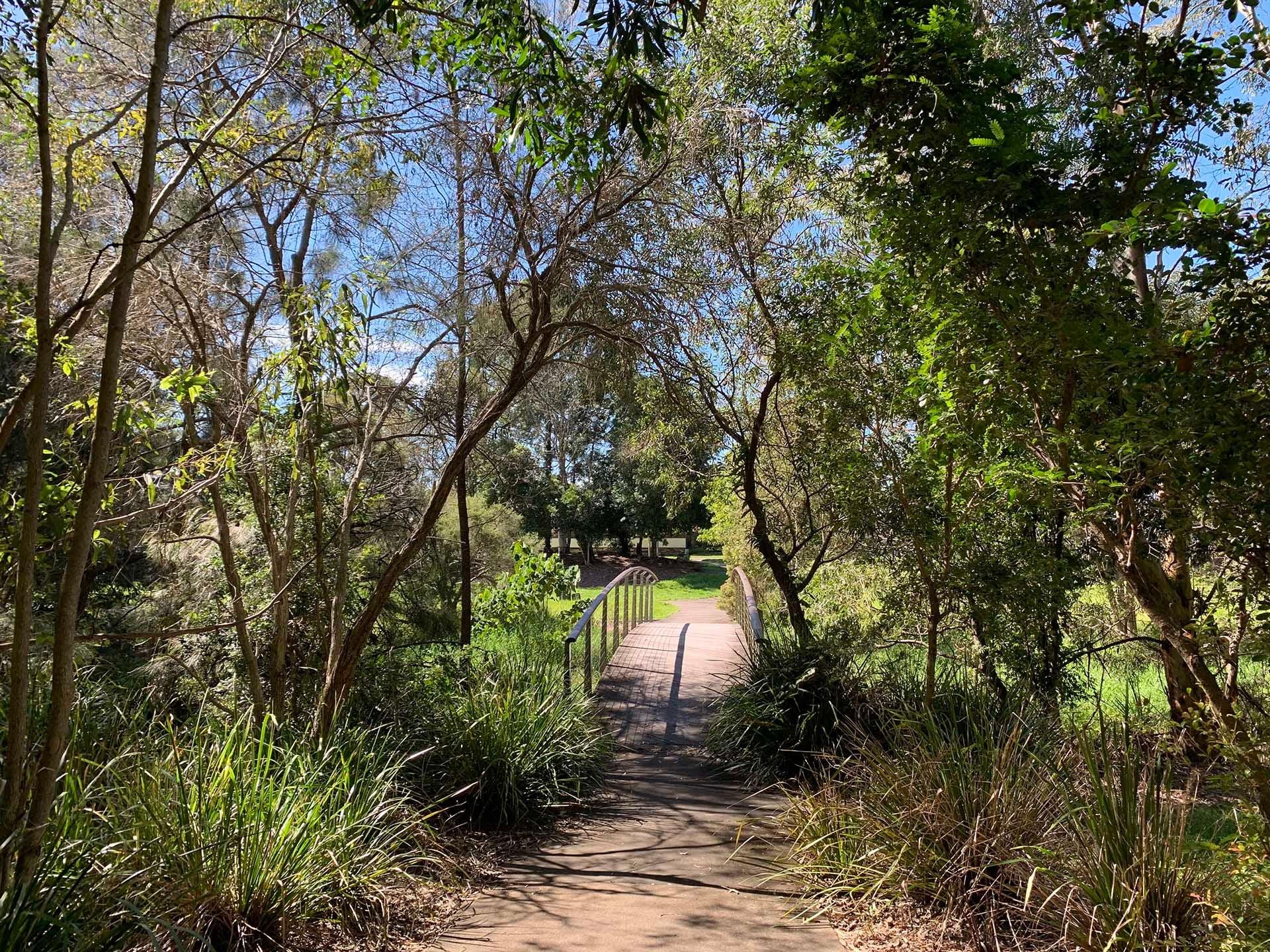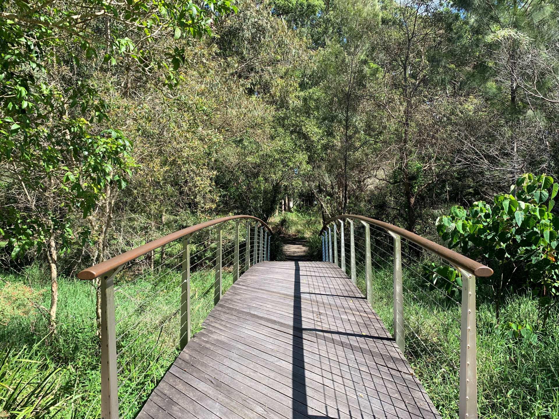 Heading to north east down Ivadale Boulevard is another park open space and wetland which continues to Parklands Boulevard. There is an exercise area for outdoor fitness, park seating and a bridge over the wetland to a pathway along the western border of the environmental reserve.