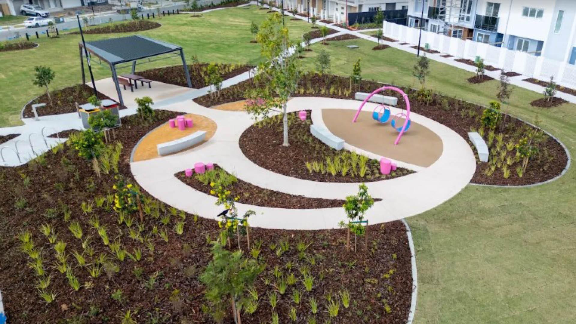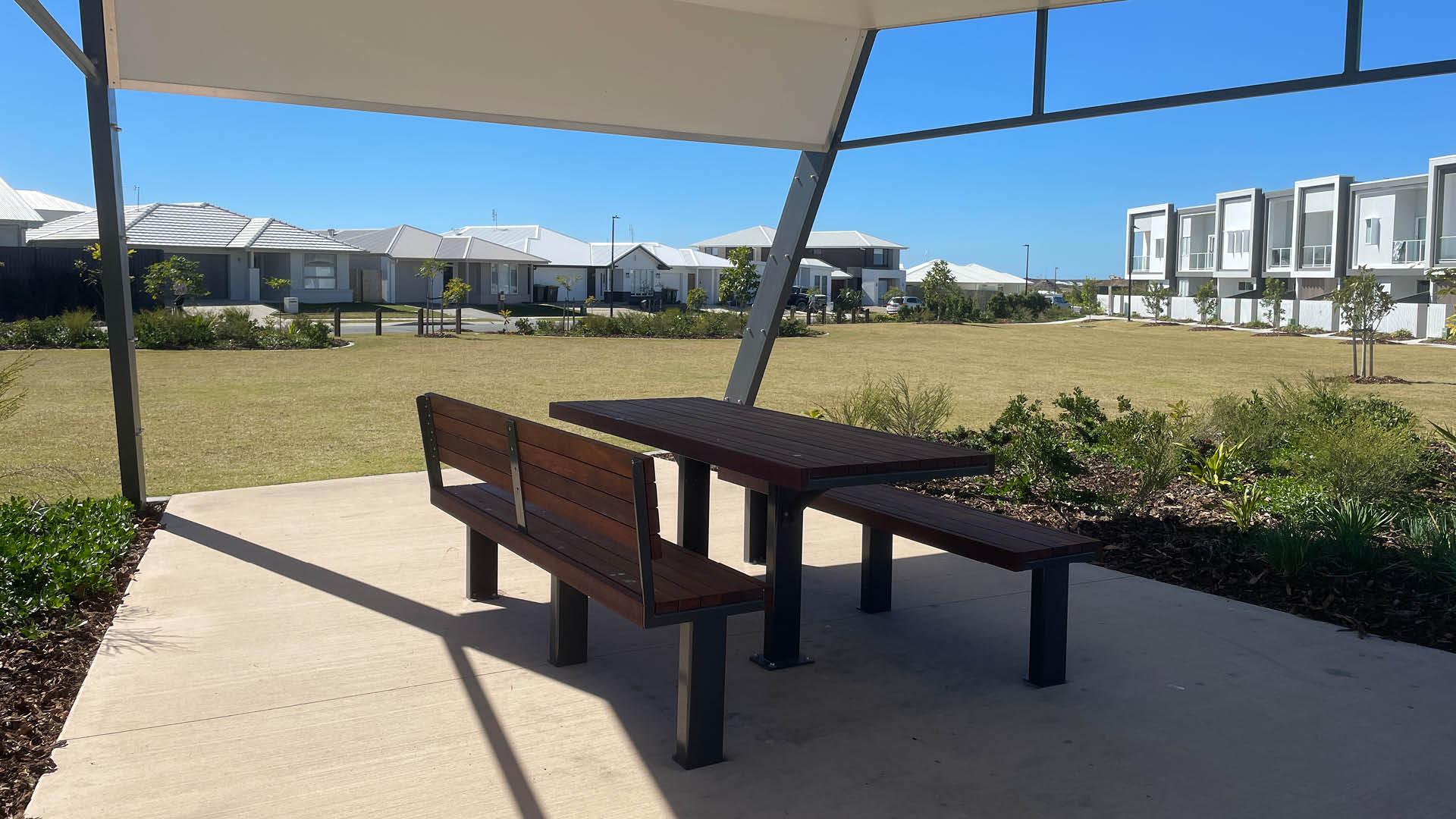 Tamborine Crescent Park provides a social gathering space, with a shelter over the picnic table, large open grass area and a network of connecting pathways.