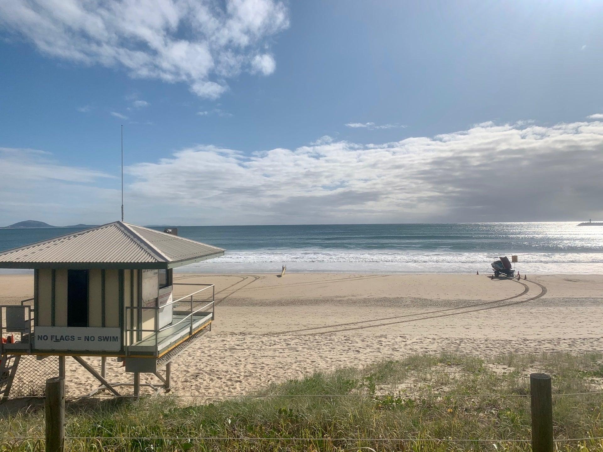 This is a patrolled beach. The lifeguard tower is located adjacent Cheese Block Park.