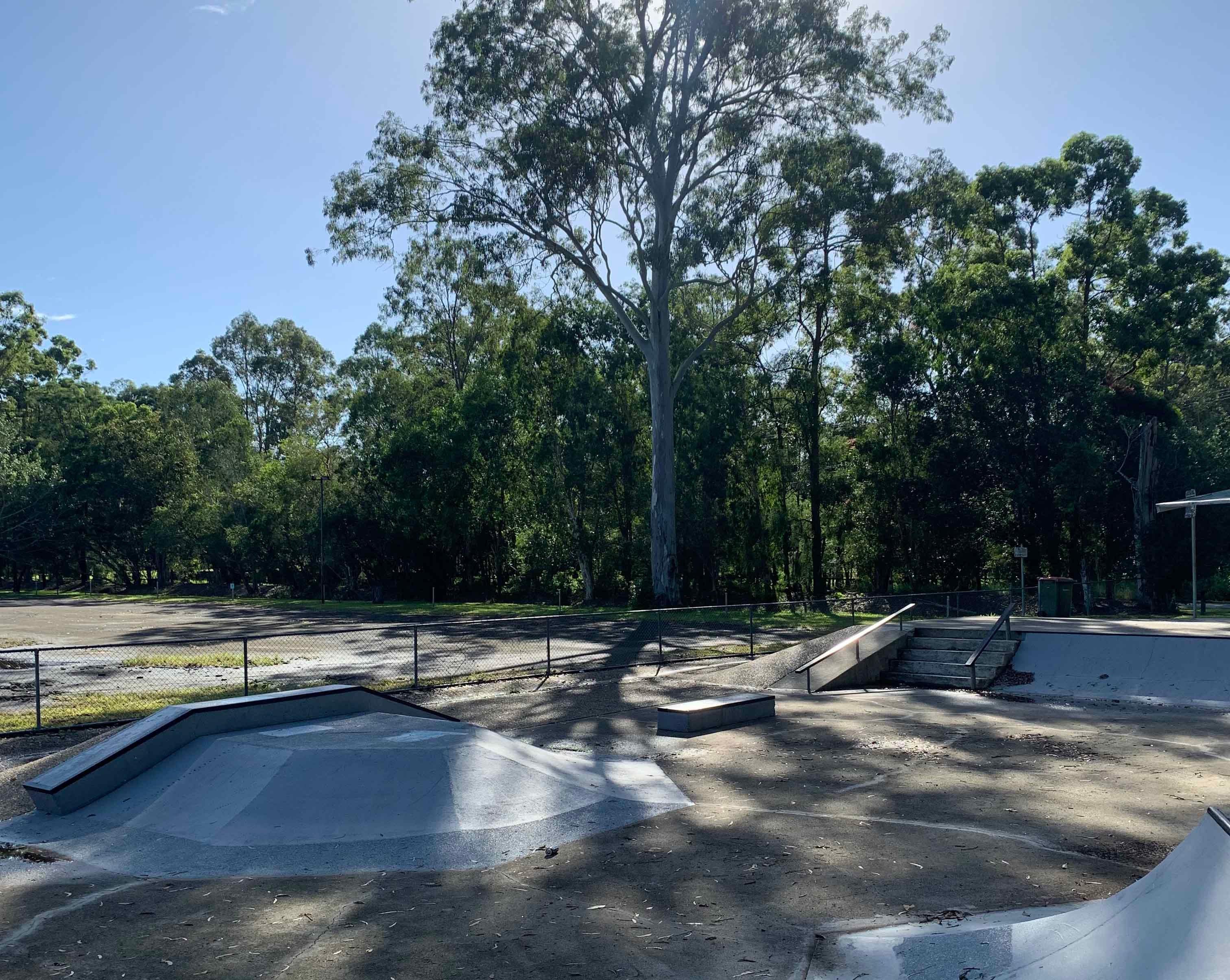 Landsborough Skate Park provides a small to medium facility with multiple elements to keep the beginner to intermediate skater entertained. It is located in the same parcel of land as the Landsborough Sport Ground. The facility is not shaded, however there are shelters and natural shade close by.