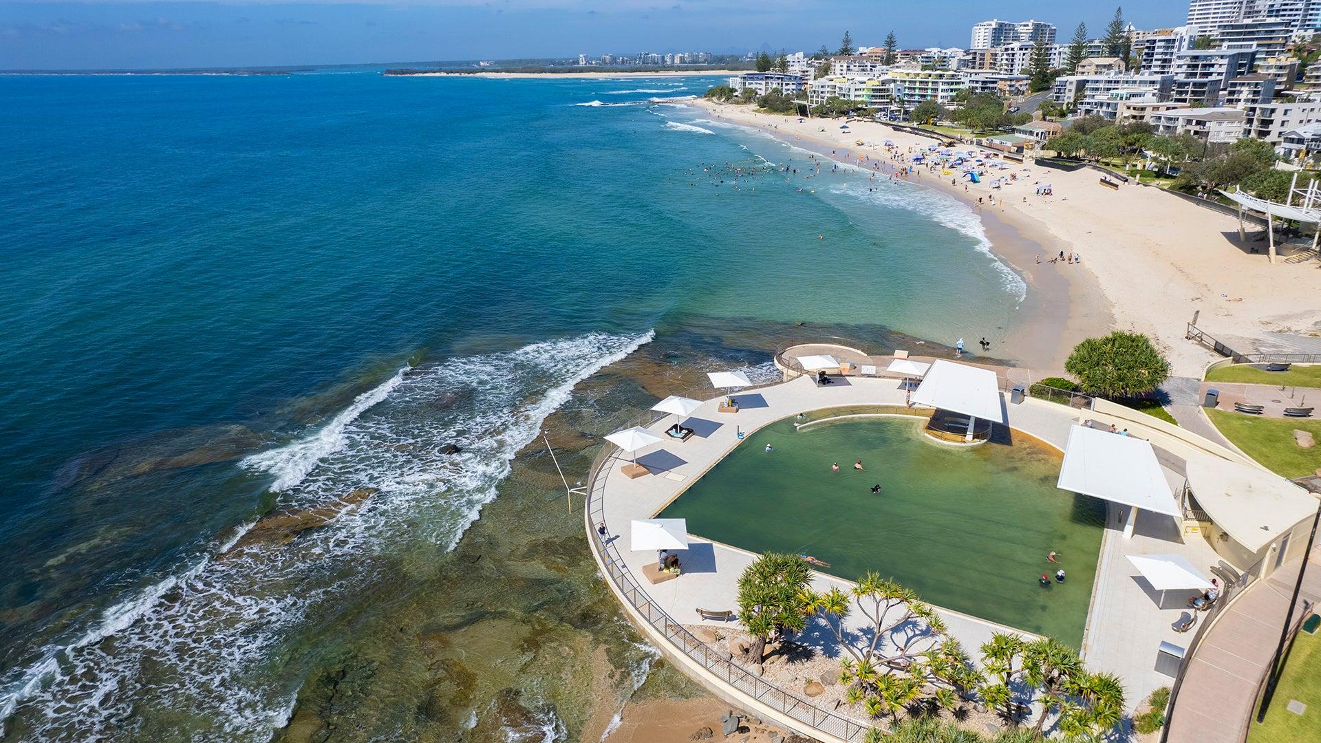 The Kings Beach Ocean Pool (also known as the Sir Francis Nicklin Memorial Pool) is located on the rocks at the northern end of Kings Beach, Caloundra.
