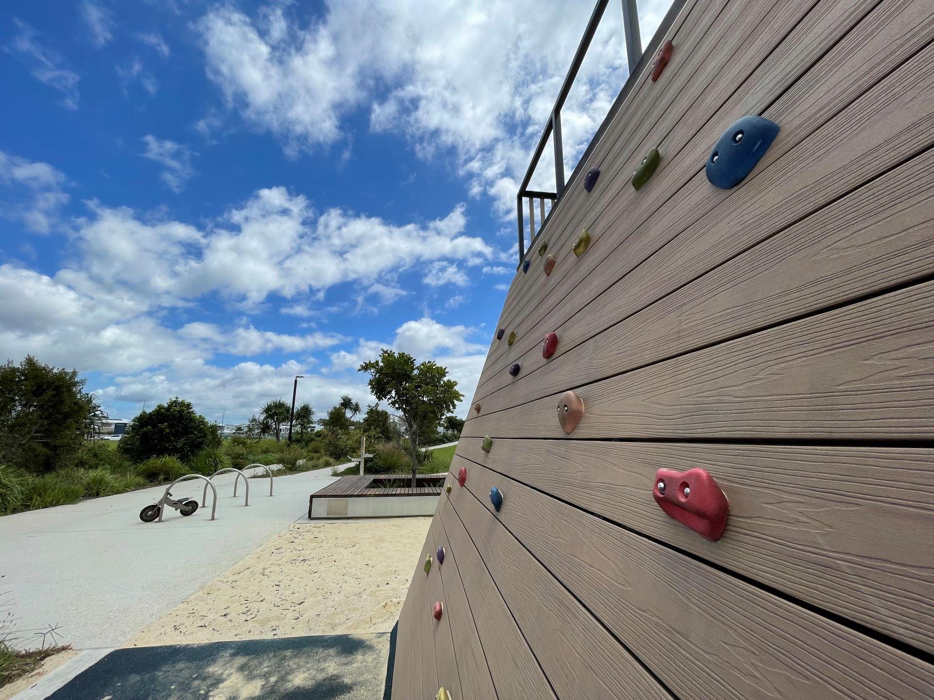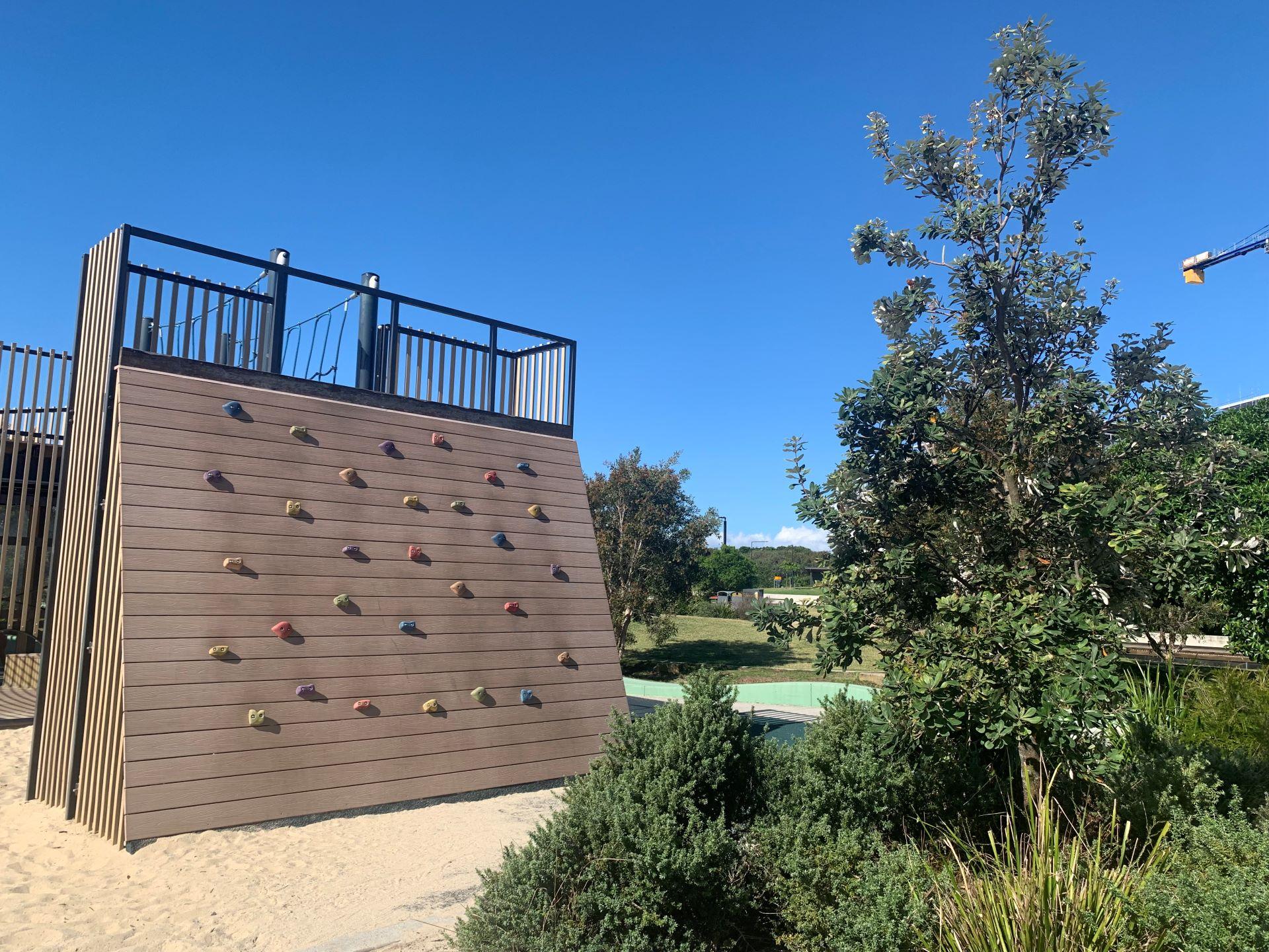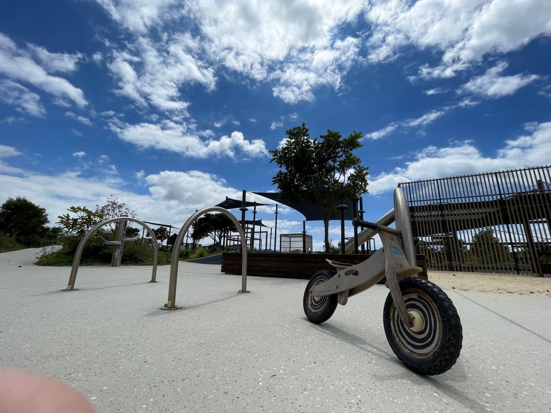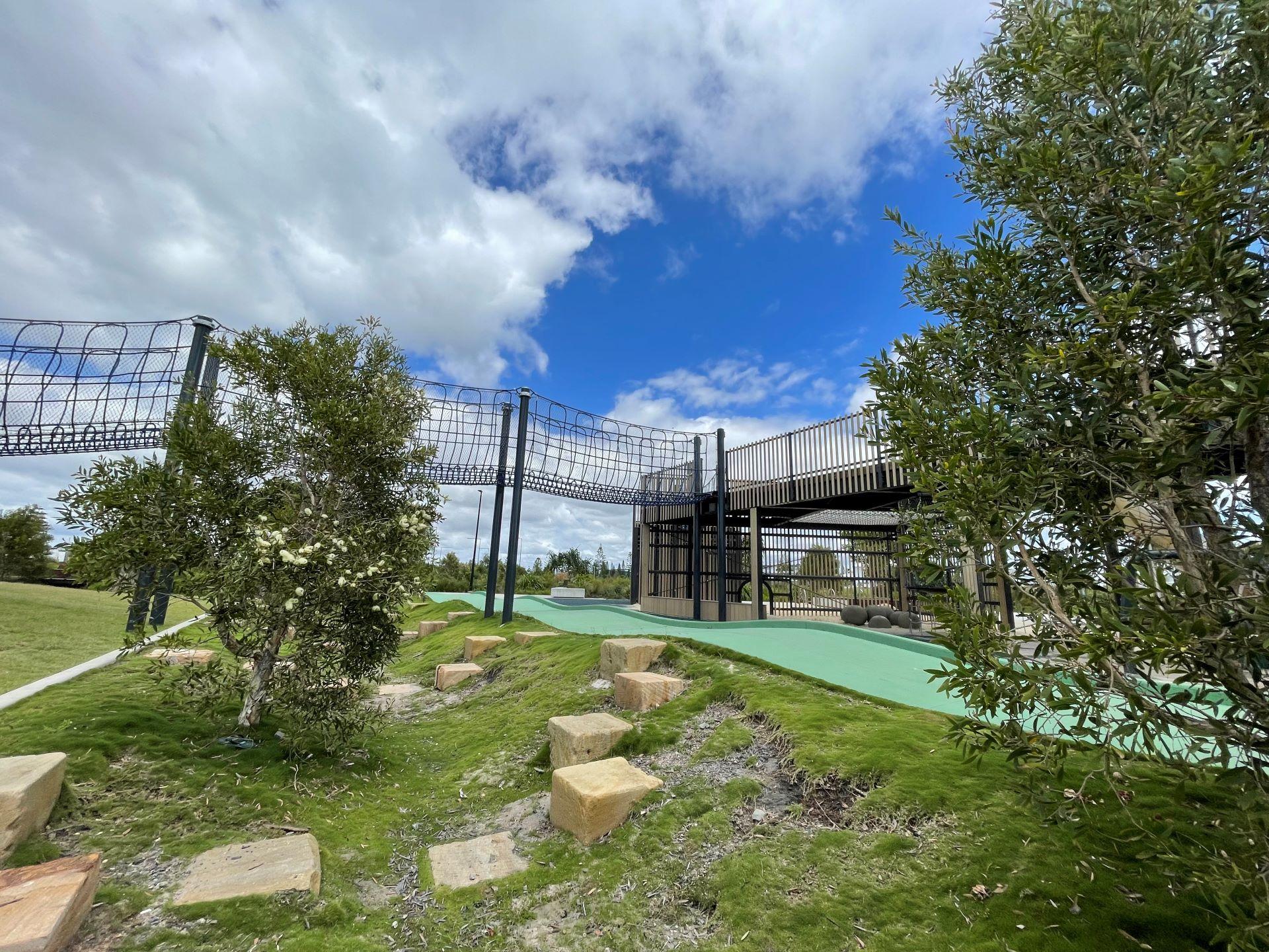 The Play space provides adventurous play elements such as climbing walls, slides and swings, as well as a large net connected by a rope bridge. Extending from the Plaza and the Playground areas is the parkland – an expansive green space with large boulders as well as shaded space suitable for a range of community activities from family picnics to social sporting matches. This area is also connected by and located adjacent to the coastal path. So you can access this park on your bikes or by foot.