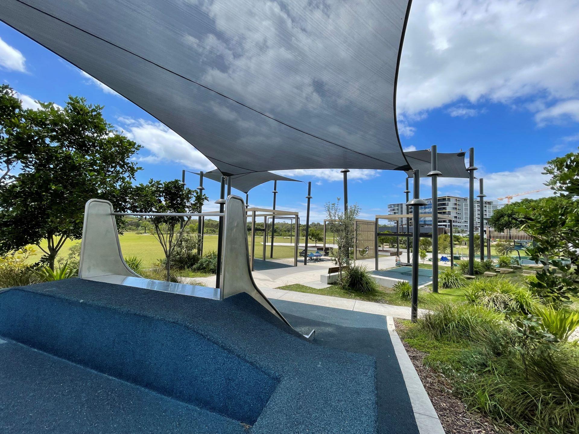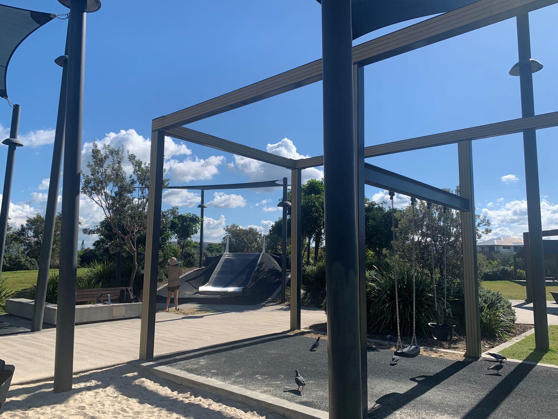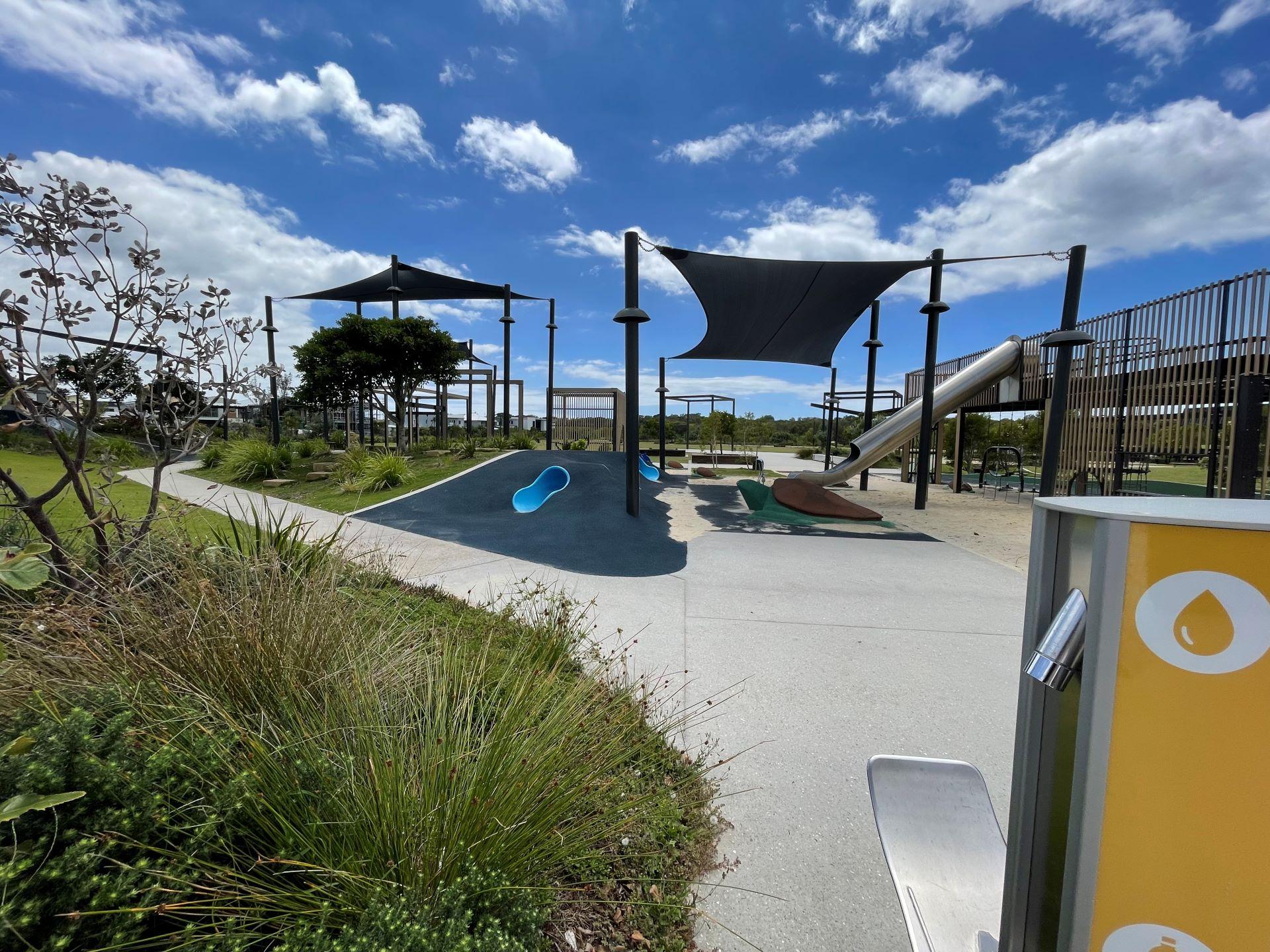This is a multi-functional park which comprises of two main areas – the Plaza and the Play space which also includes a large open parkland area. The park is also close to Bokarina Beach lifeguard tower which is manned and it's connected to the Coastal Pathway