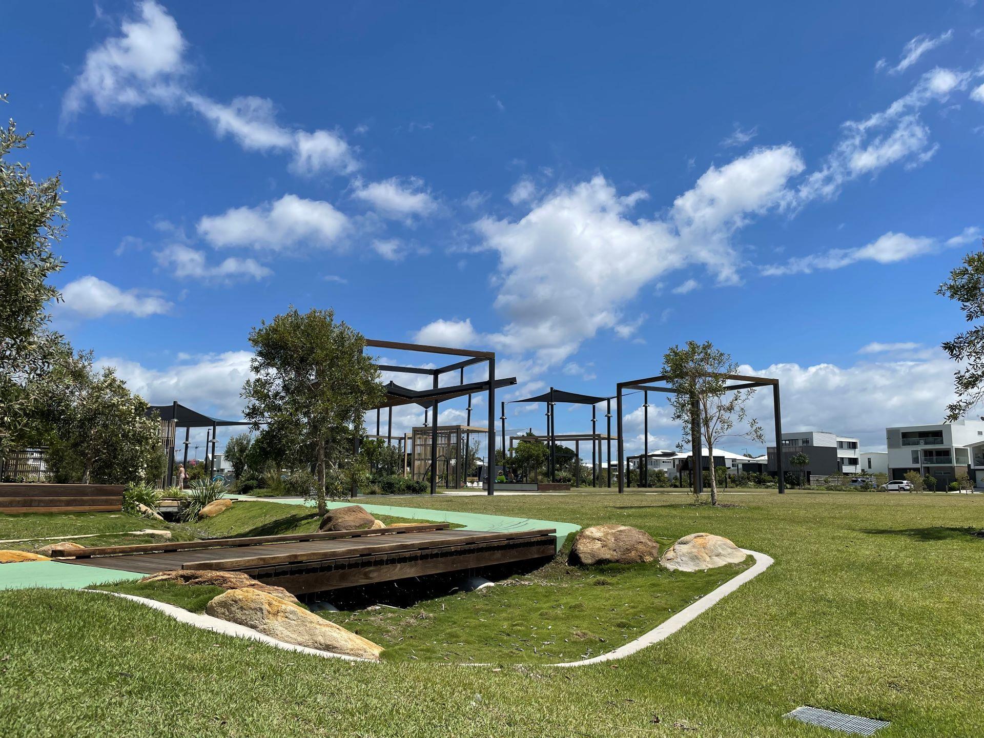 This park is a multi-functional. It comprises of two main areas – the Plaza and the Play space which includes a large open parkland area.