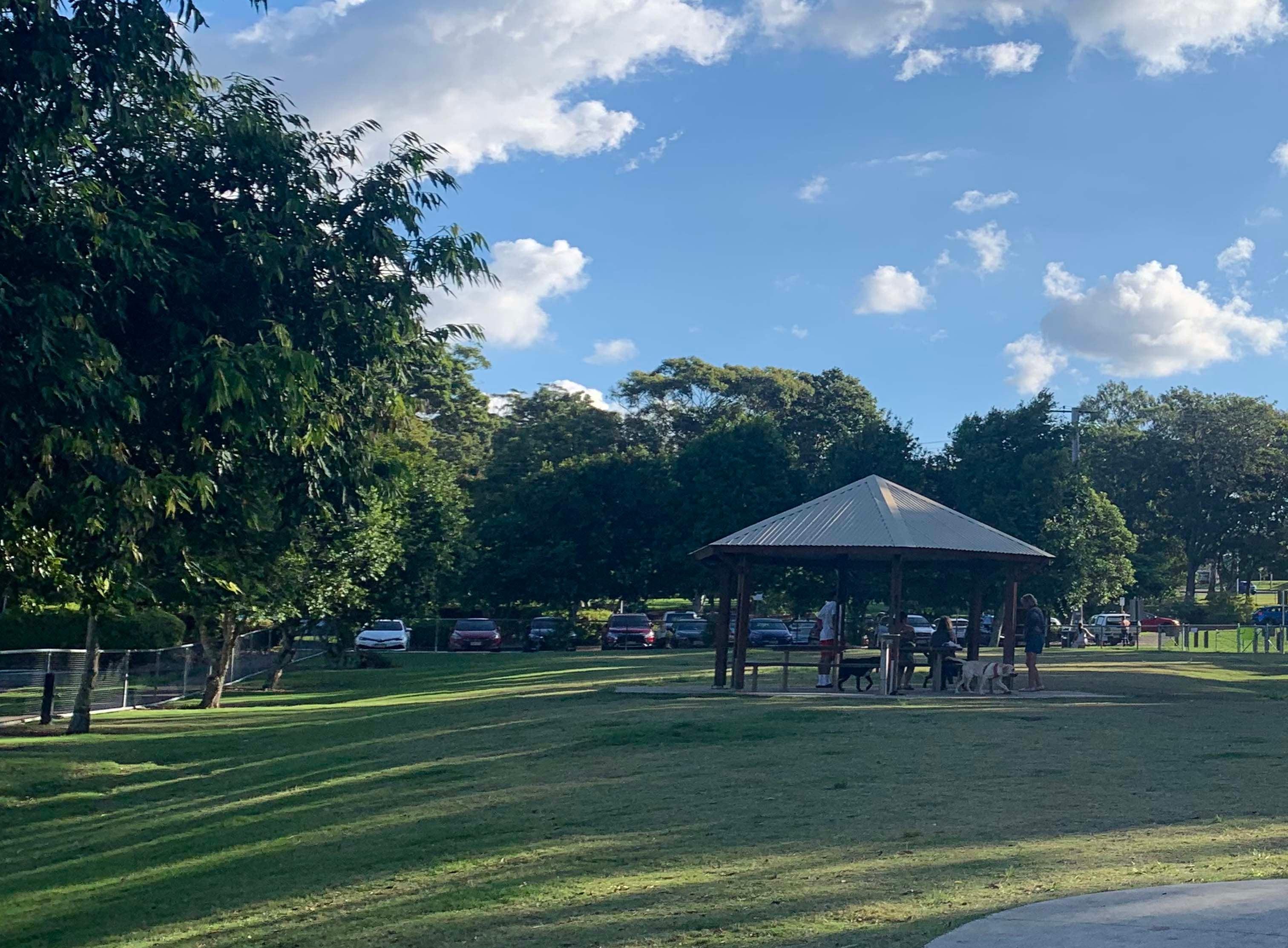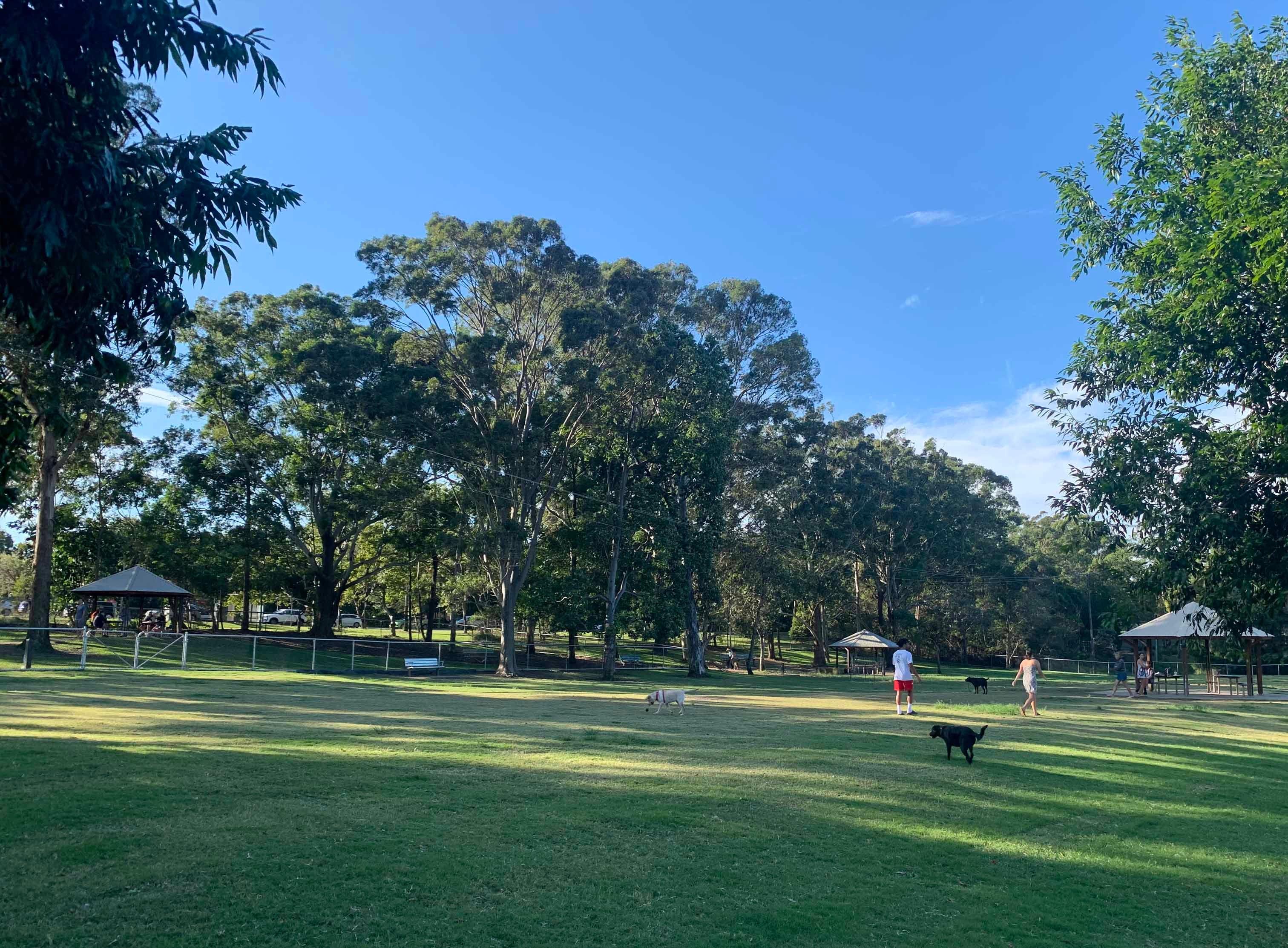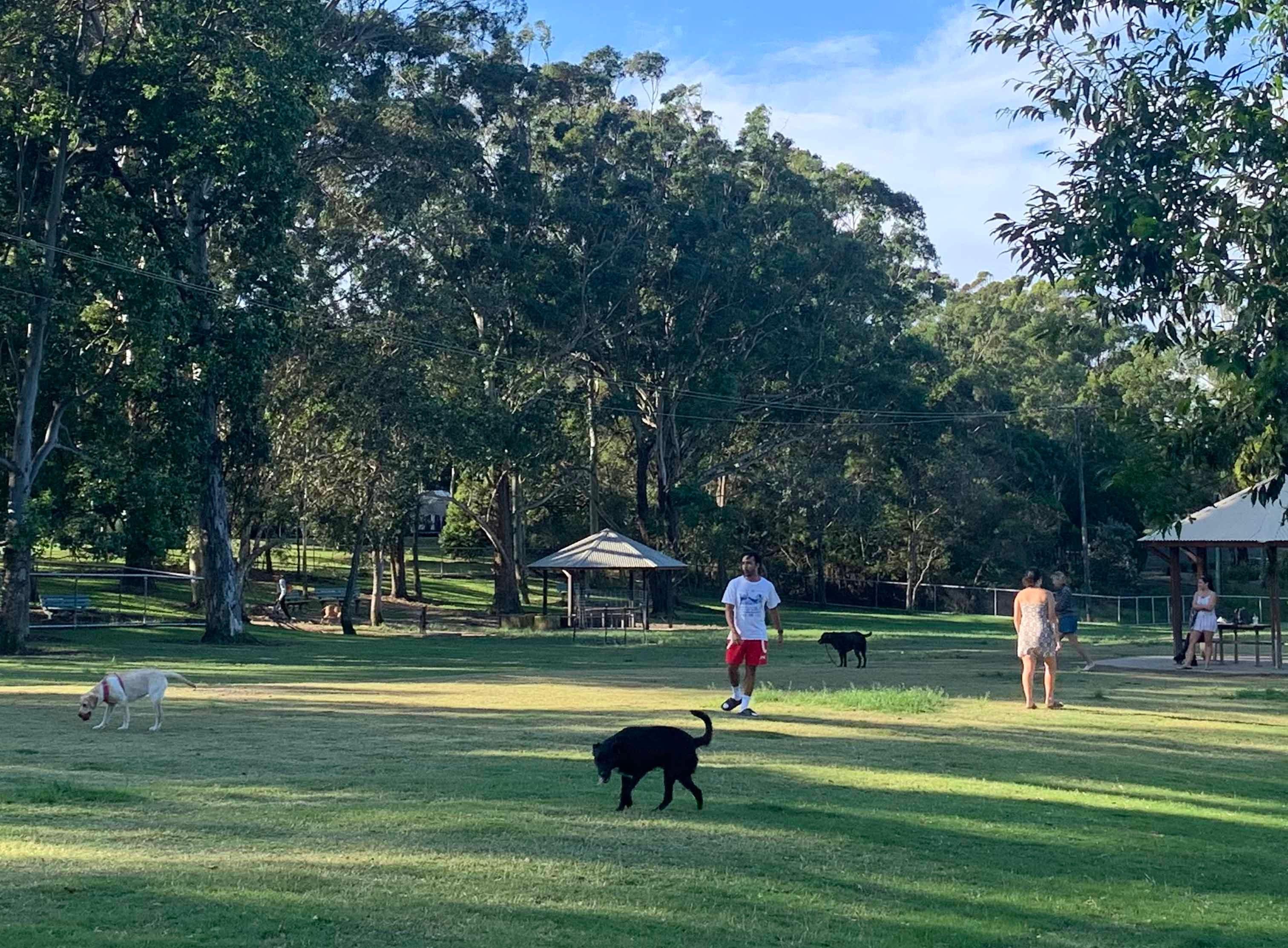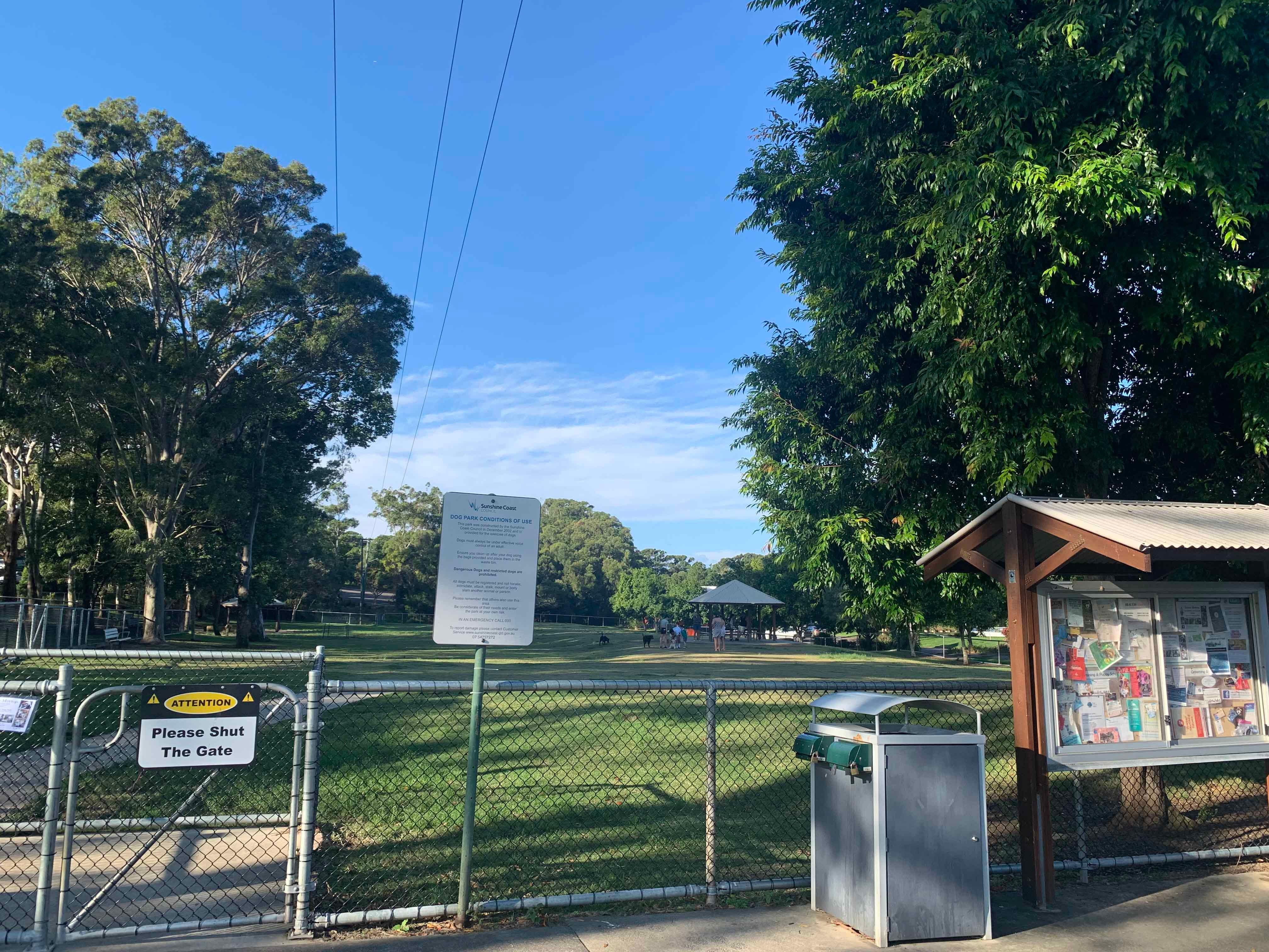 This is a fully fenced dog off-leash area. Multiple shelters and seating. Public amenities located in Buderim Lions park opposite.