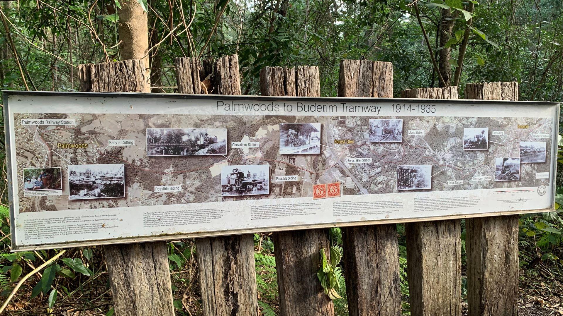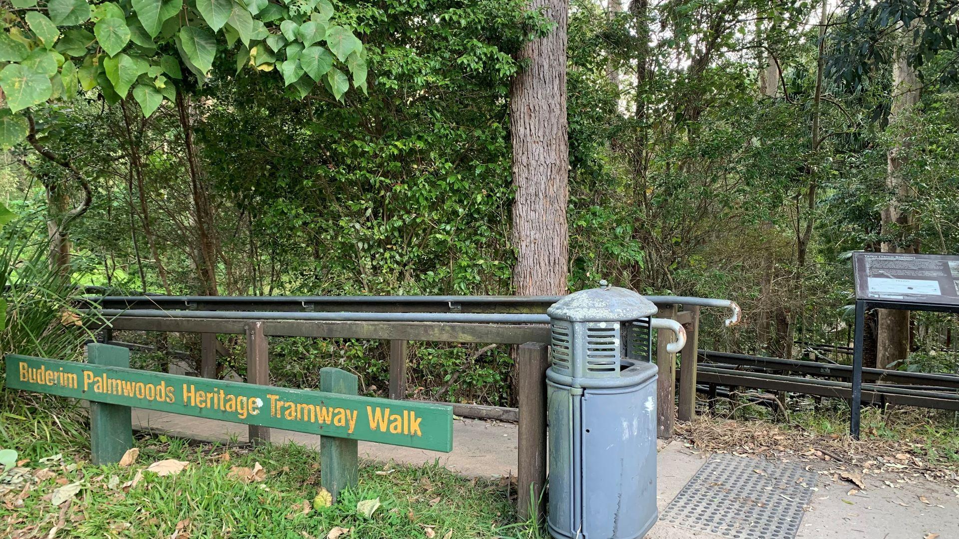 Buderim - Palmwoods Heritage Trails and Bushland Park features the Heritage Tramway Walk. This trail follows the path of the old Buderim-Palmwoods railway that once operated on this route and ceased in 1935. The beautiful walk, through sub-tropical forest, is two kilometres long (four kilometre round trip) and features interpretive signage and seating at various points. Bring your own water.