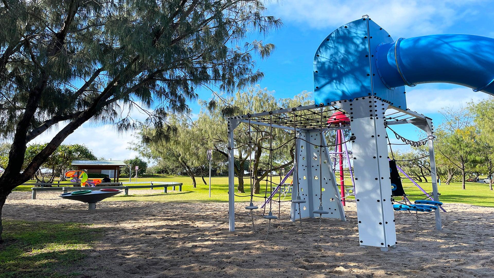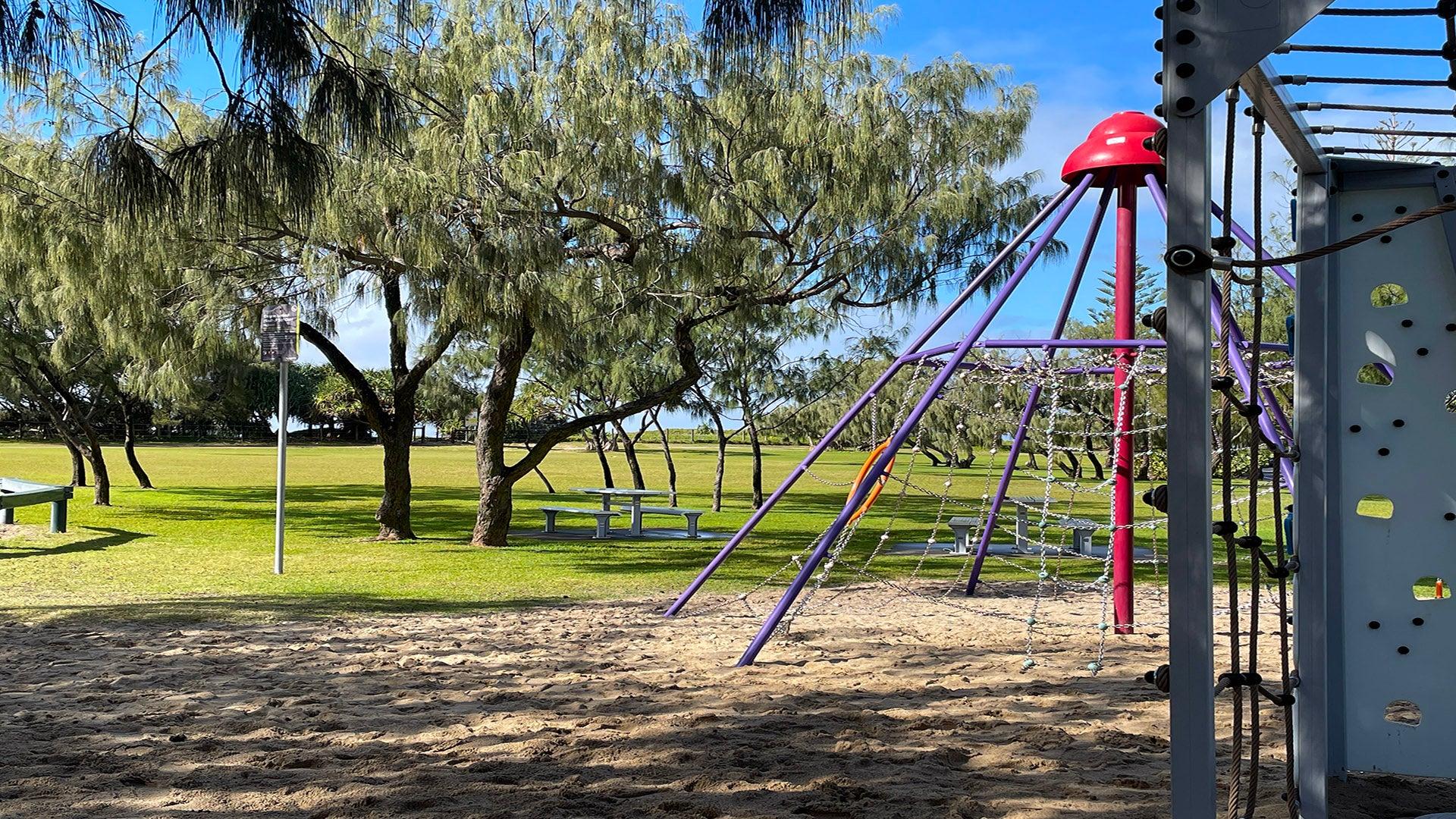 On the north side, you will discover an exercise equipment area with some natural shade. As well as a picnic shelter and drinking fountain and views over a large open space area, great for kick and throw activities. Also on the northern side, is a playground, memorial and seating under natural shade. As well as access to the beach via Beach Access 222.