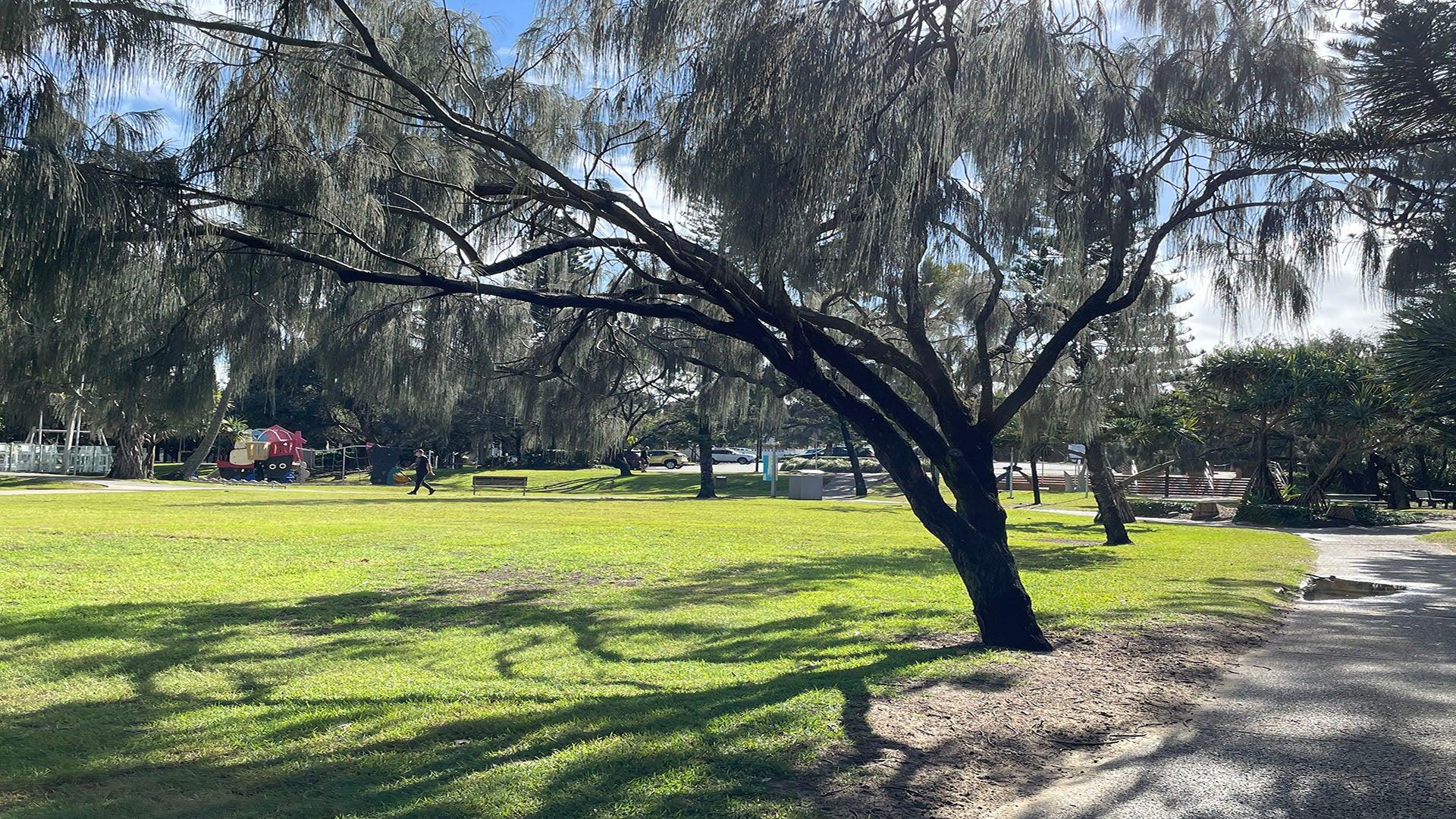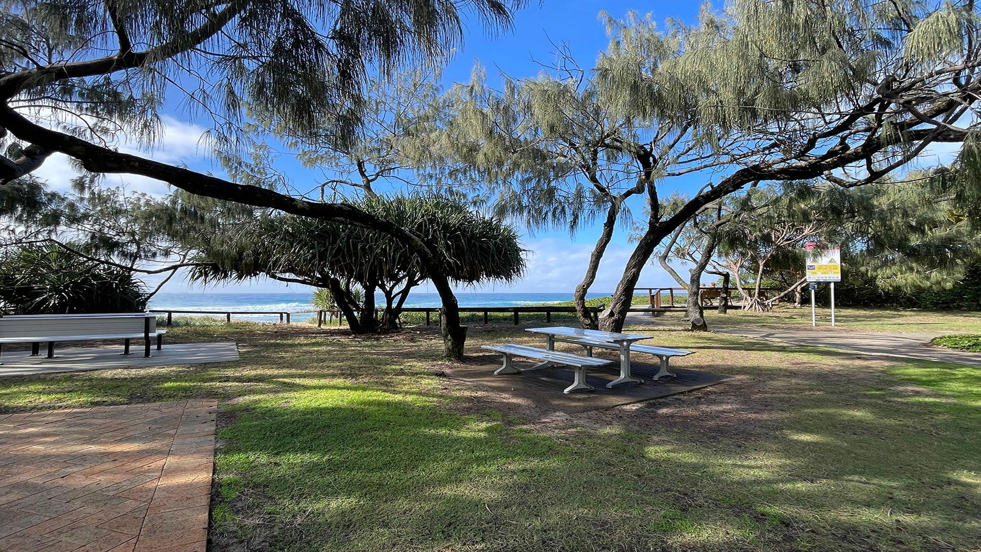 Coopers Lookout Park sits either side of the Kawana Surf Club.