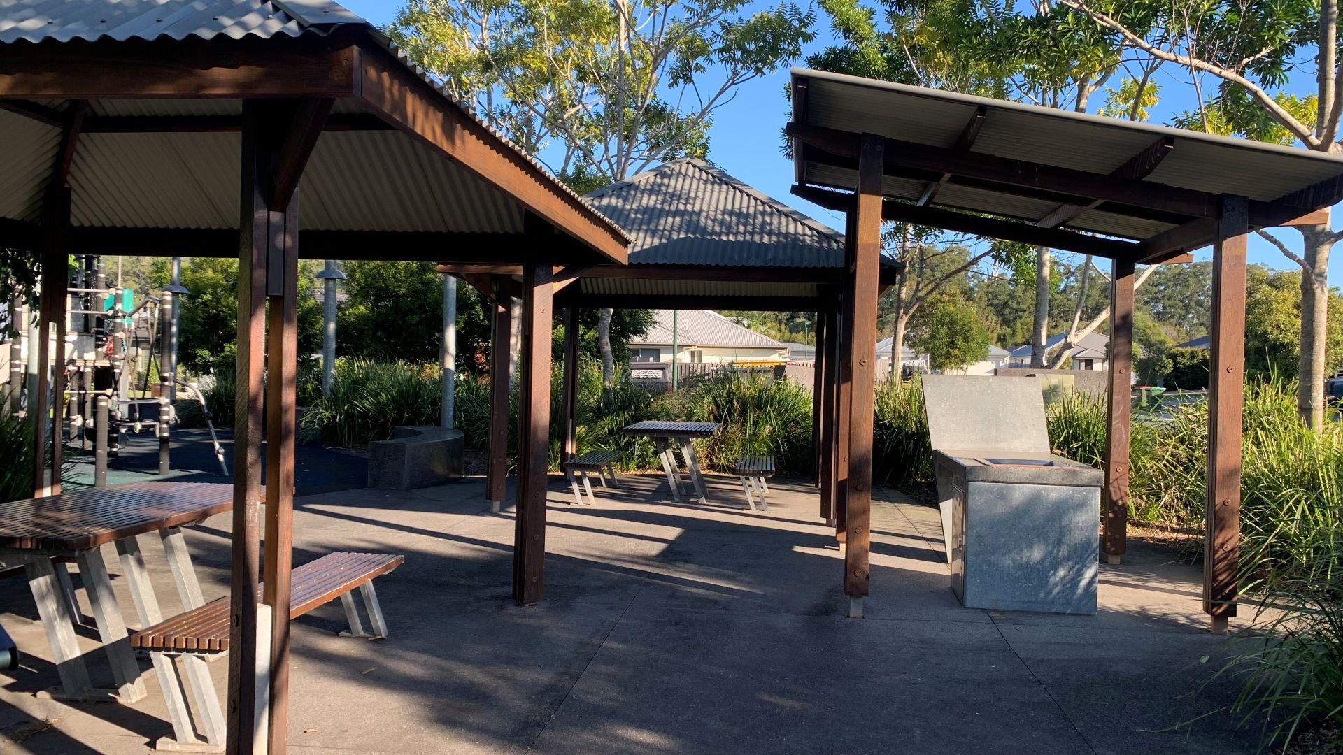 Forest Pines Park provides plenty of natural shade and open space. The playground sits under shade sails to enhance your play experience. There is also a barbecue and picnic tables under three shelters located close to the playground. So if the kids want to play, you can enjoy still your barbecue lunch while watching the kids.