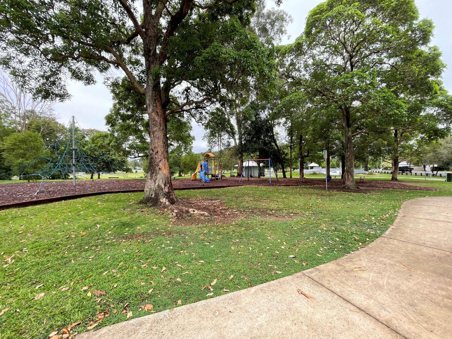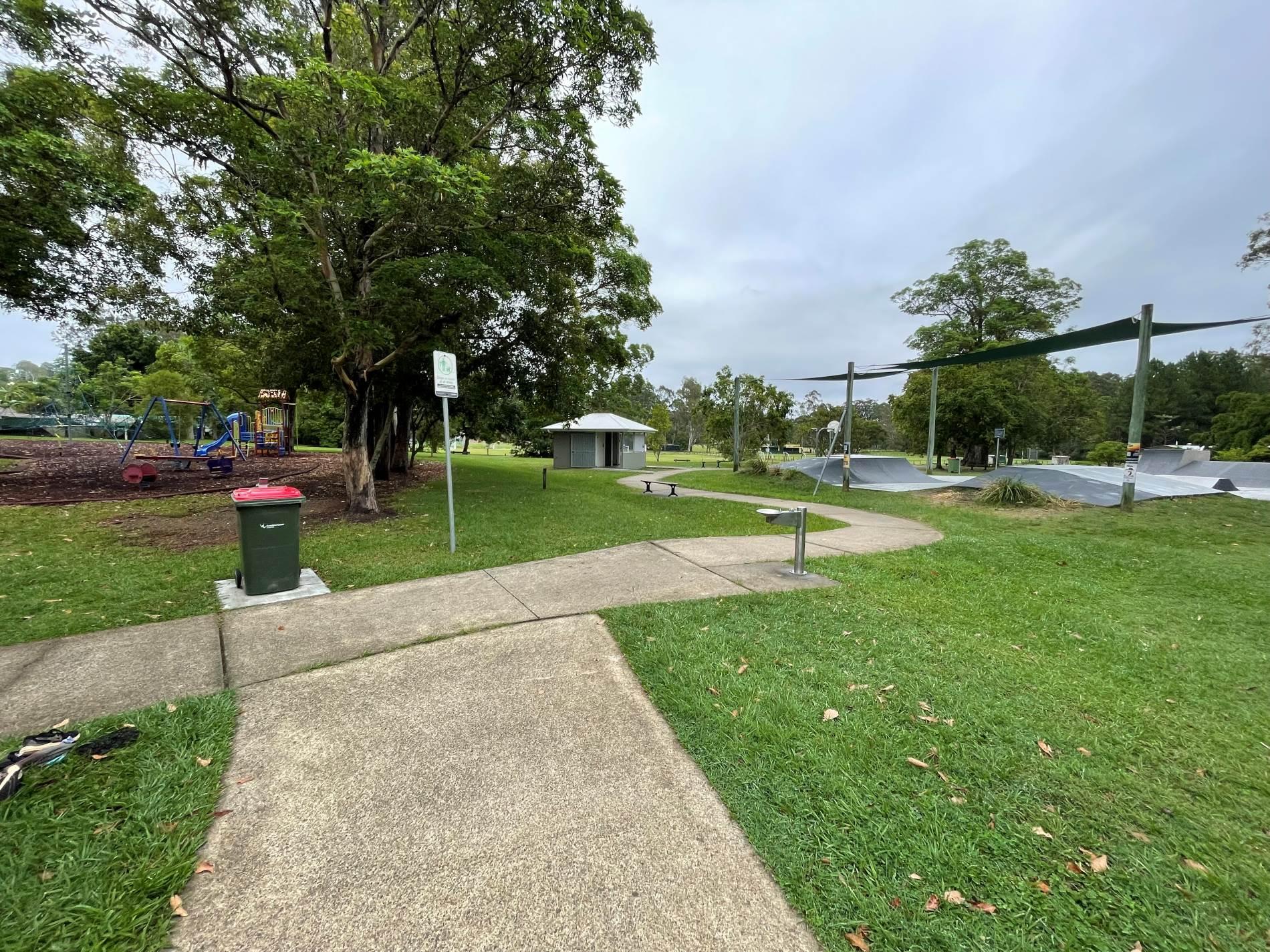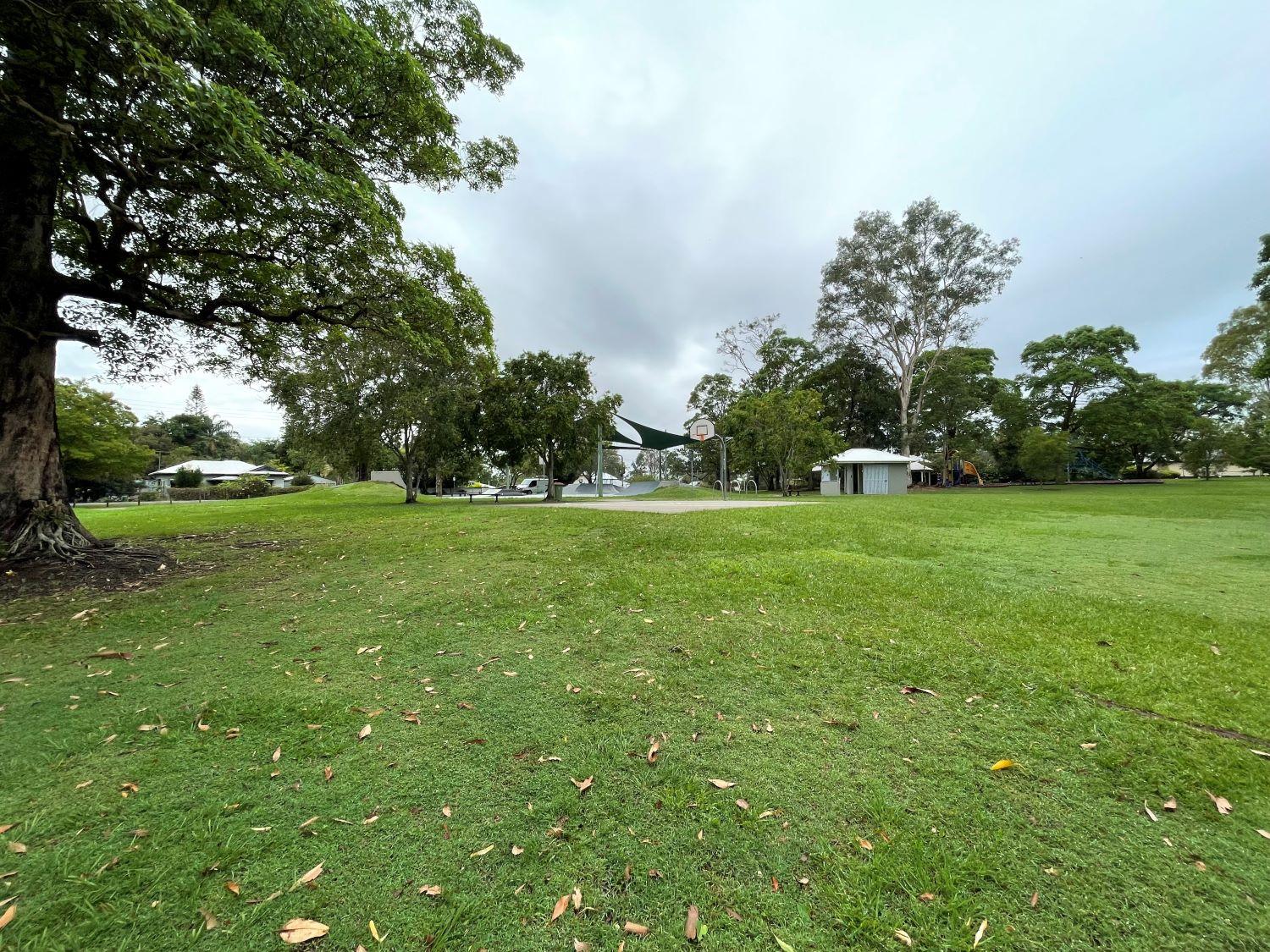 The park packs in a lot of facilities including a playground, half basketball court with a netball hoop at the back (on grass) and a skate park. It also provides picnic and barbecue facilities under shelters, connecting pedestrian pathways and public amenities. There is also plenty of natural shade for protection while you enjoy the open space.