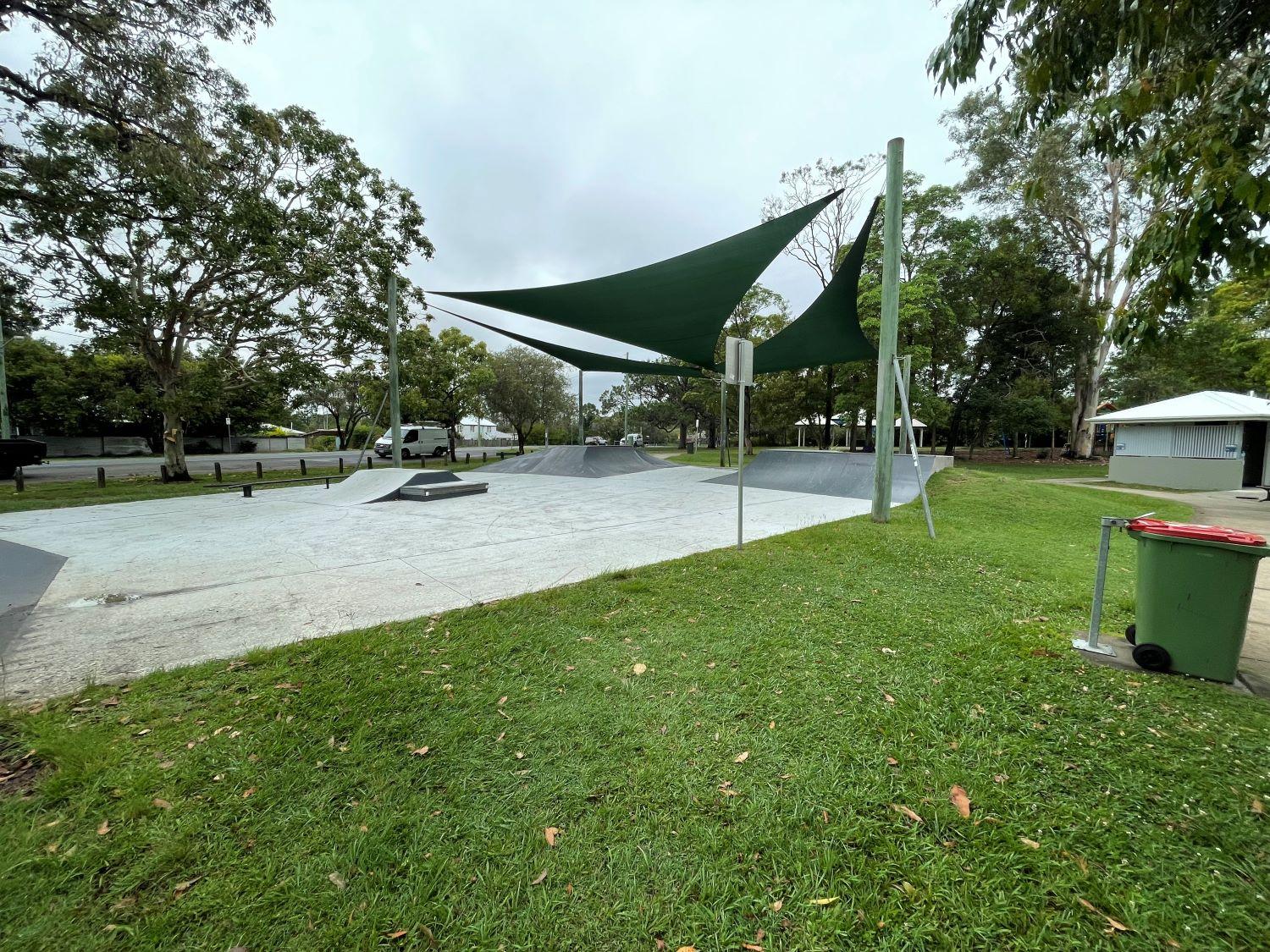 This park is known for it's skate bowl and basketball half court. The skate park is sheltered by shade sails. There is also a playground to be enjoyed by younger children.