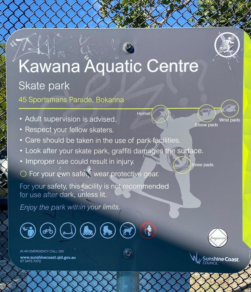 The Kawana Island Skate Park is located in the Kawana Island Sports Precinct, (on the northern side of the Kawana Aquatic Centre).