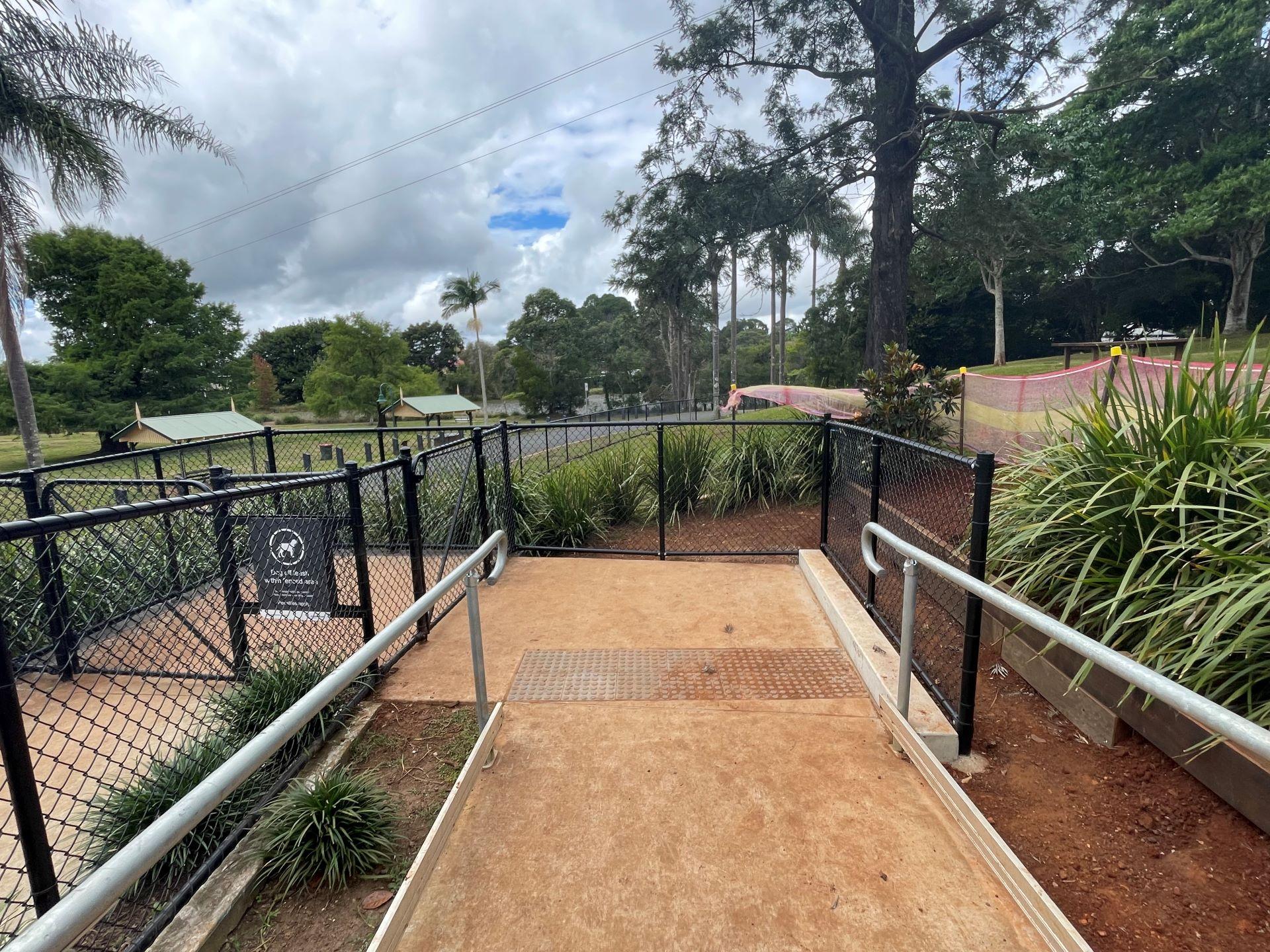 The space is easily accessible for all our community members, with ramps and rails. It’s also close to car parking while being far enough away from the main road and traffic to give our dog owners ease of mind. The area offers plenty of natural shade, seating and open space for your furry friend to get their exercise.