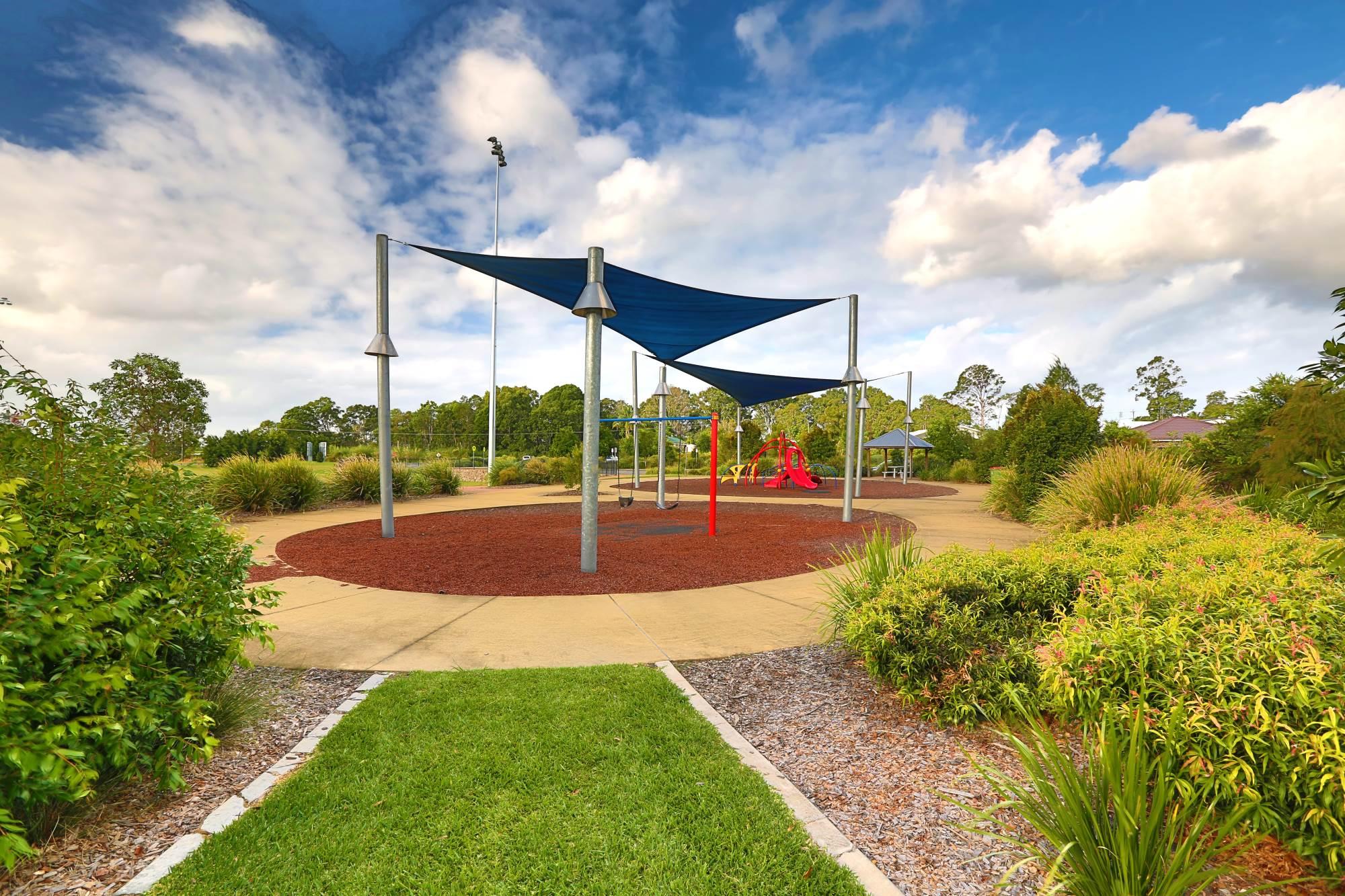The Parklakes playground is located between the sports complex clubhouse and the car park. The playground has a great location overlooking the sports field and it is sheltered by shade sails. The Parklake Wetland and Bushland Conservation Reserve area adjacent to the sport fields that may be accessed a short walk from the playground area, via the edge of the sports field.