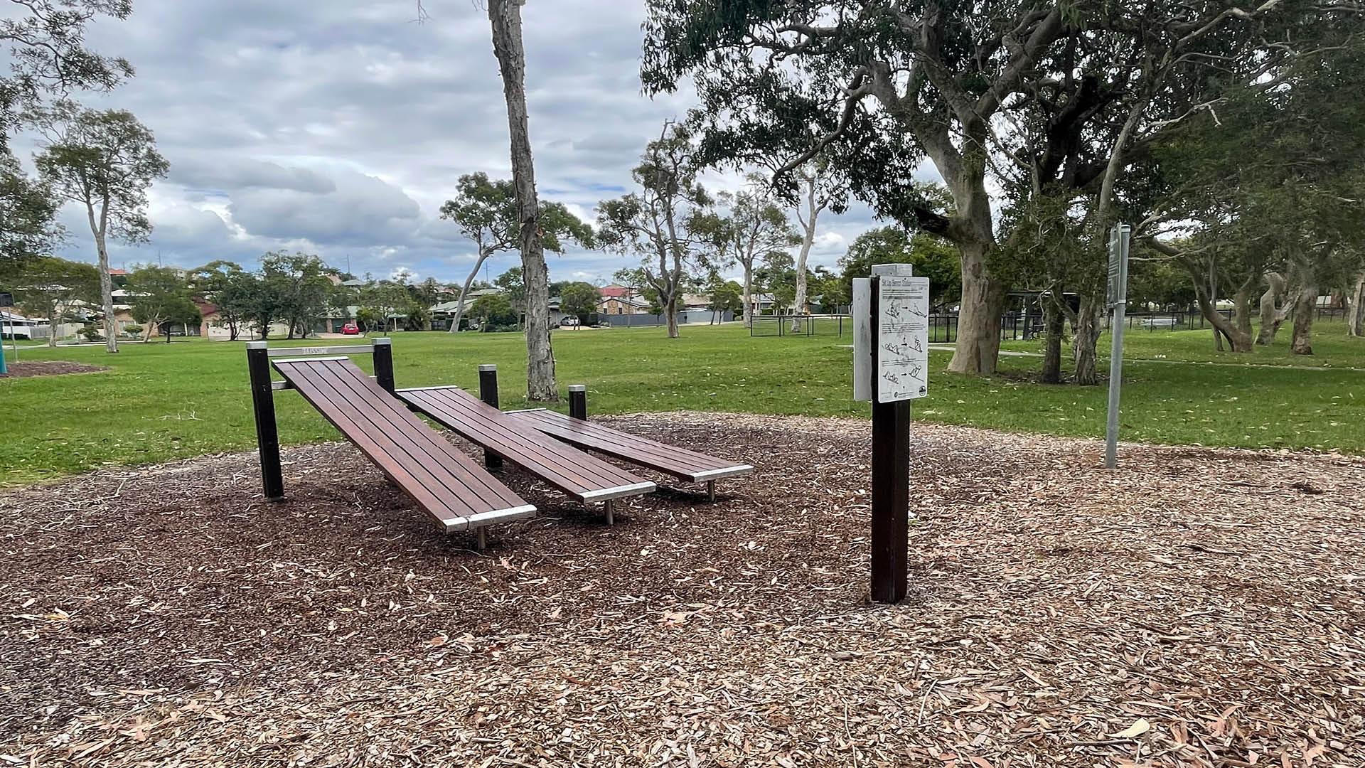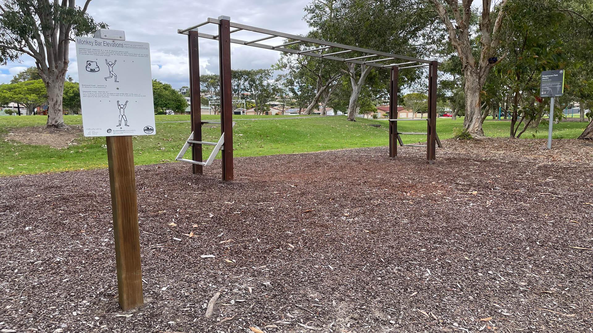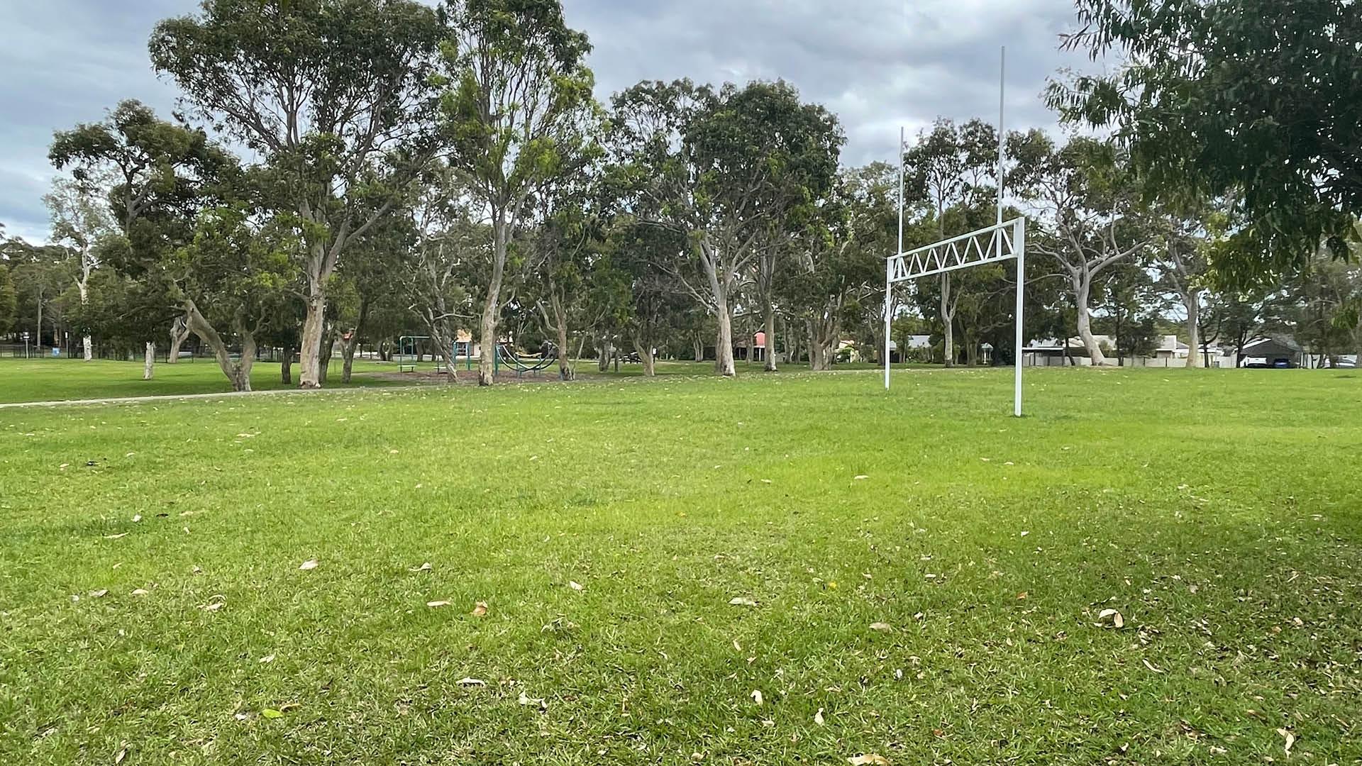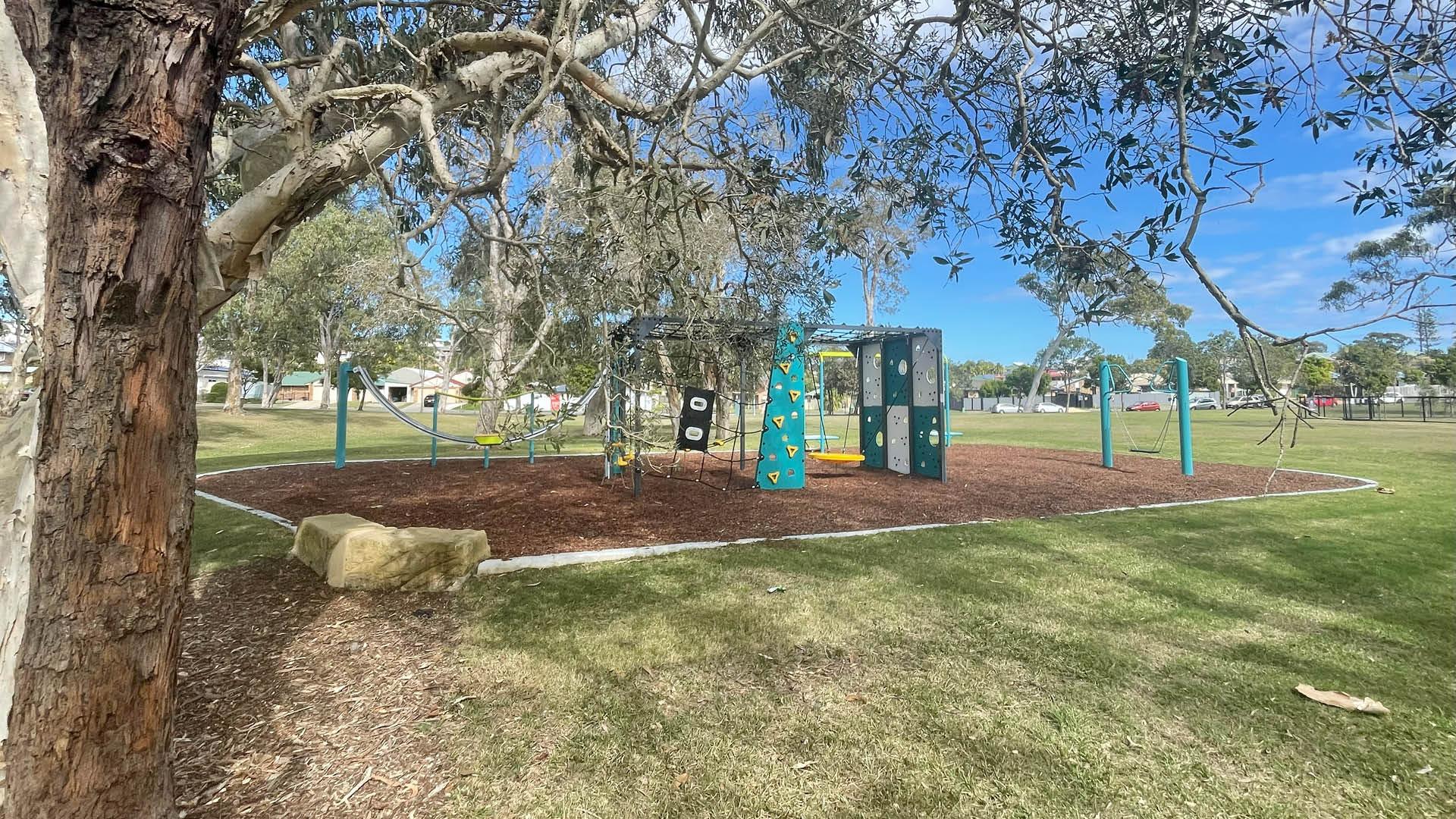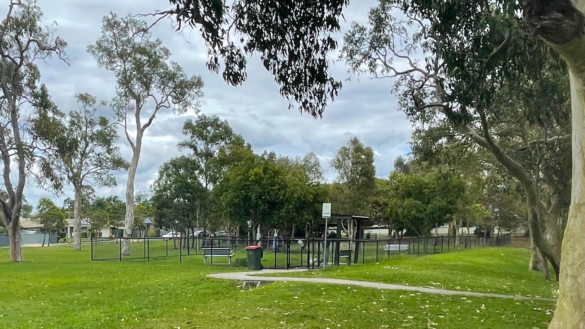 This large park provides a lot activities. From an exercise equipment area, two playgrounds with shelters and picnic facilities, open space areas for kick and throw activities, a sports field with goal posts, dog off leash fenced area and pedestrian connection pathways throughout the park for ease of access. There is on-street parking.