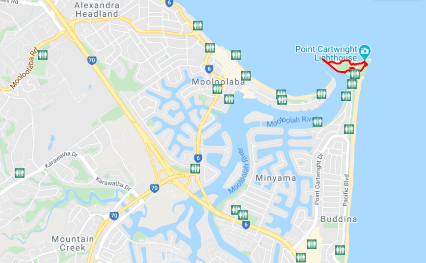 From Nicklin Way, Kawana, turn onto Point Cartwright Drive, then turn left into Pacific Boulevard. Stop at the carpark near the start of the parklands.