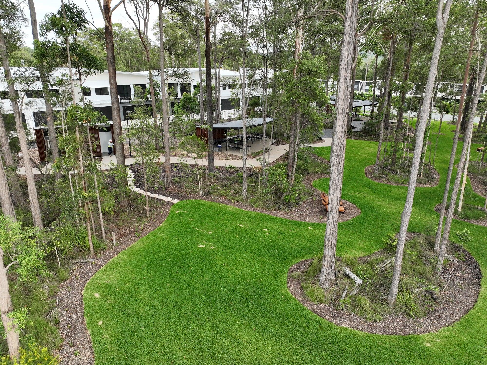 Offering a genuine forest experience, the playground can be enjoyed by all ages and the park features contemporary shelters and public amenities designed to complement the natural surrounds, as well as a mixture of established trees and open spaces, social spaces for barbecues and a variety of natural seating options.
