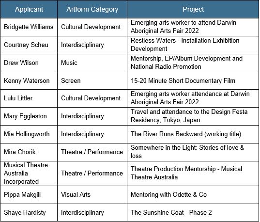 The successful grant recipients will deliver a diverse range of projects including documentary film making, site-specific performance, and music recordings.