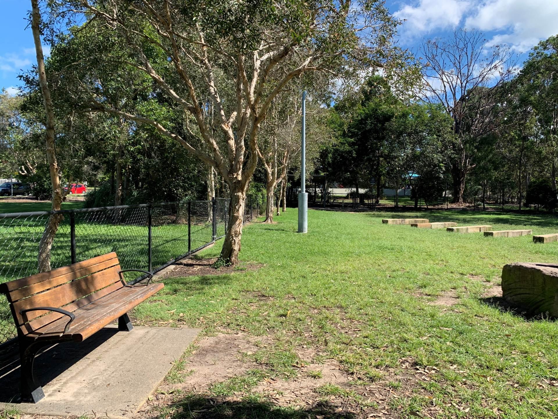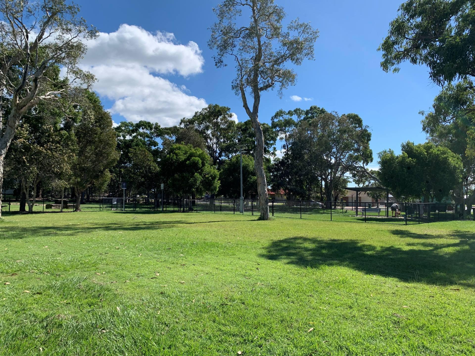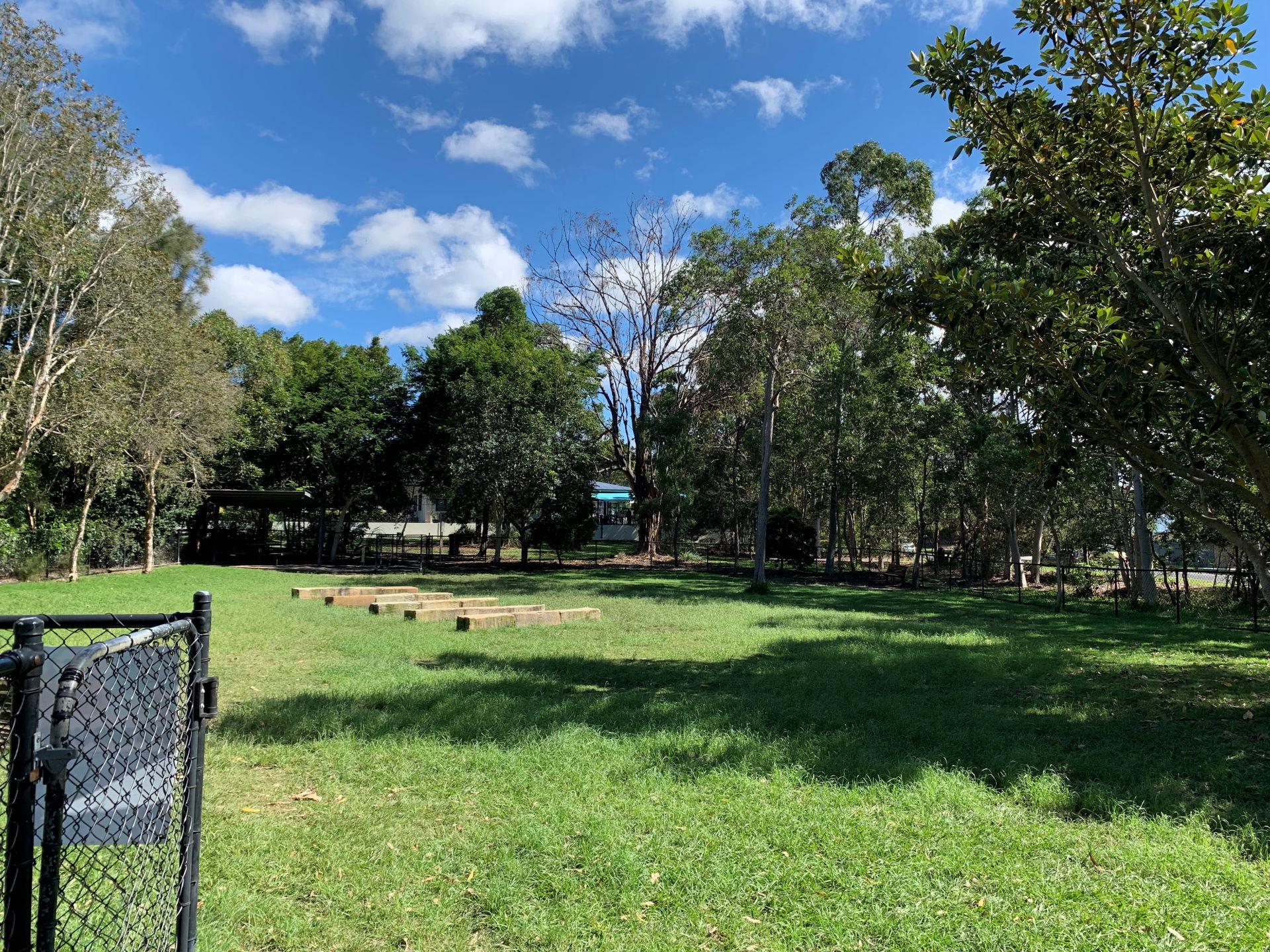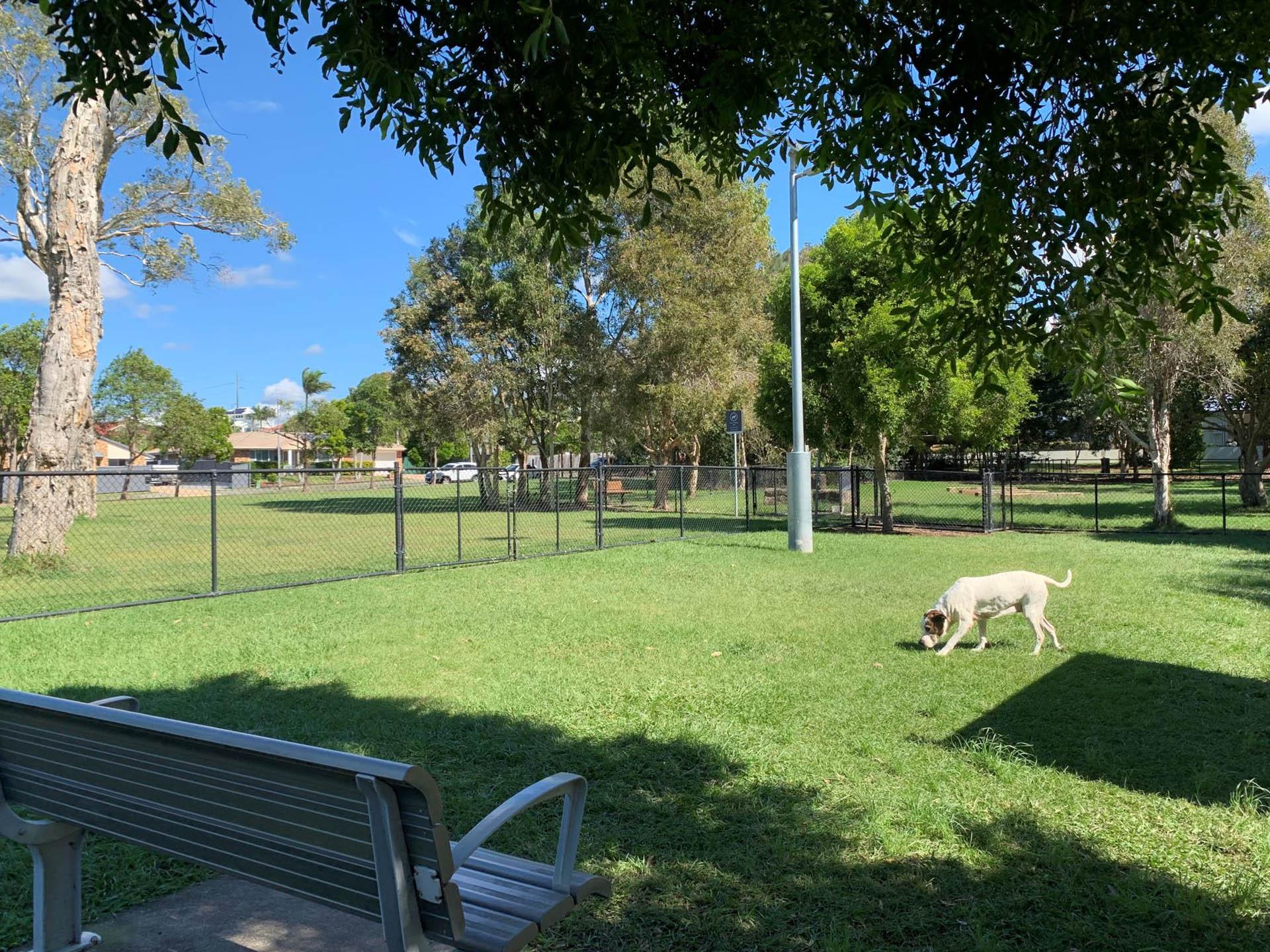 The dog off leash park is located between Kalana Road and Beerburrum Street. There are two separate off leash areas, one for small dogs and the larger area, caters for medium to large dogs. There is a shelter and natural dog agility equipment in the larger of the two areas.