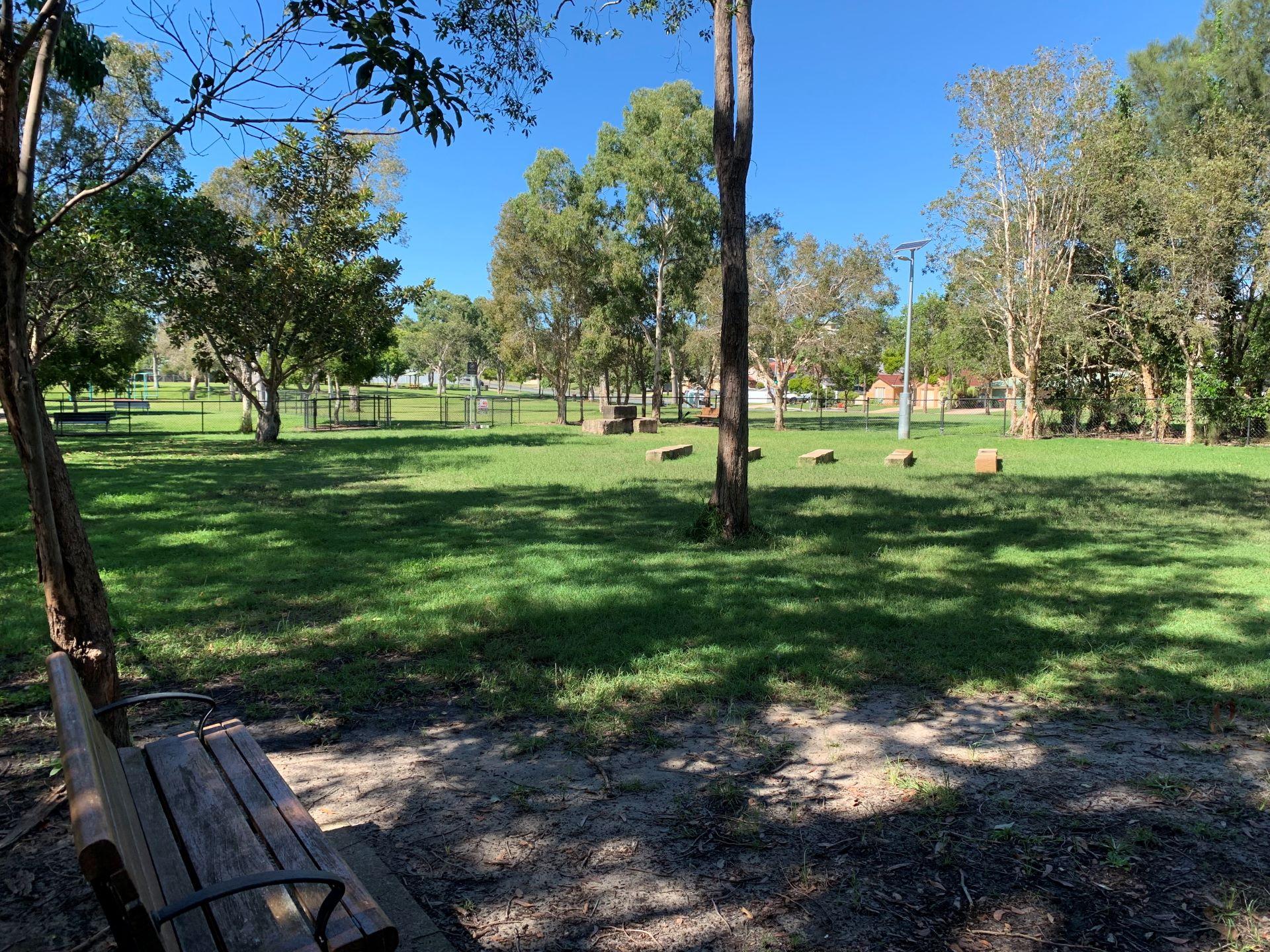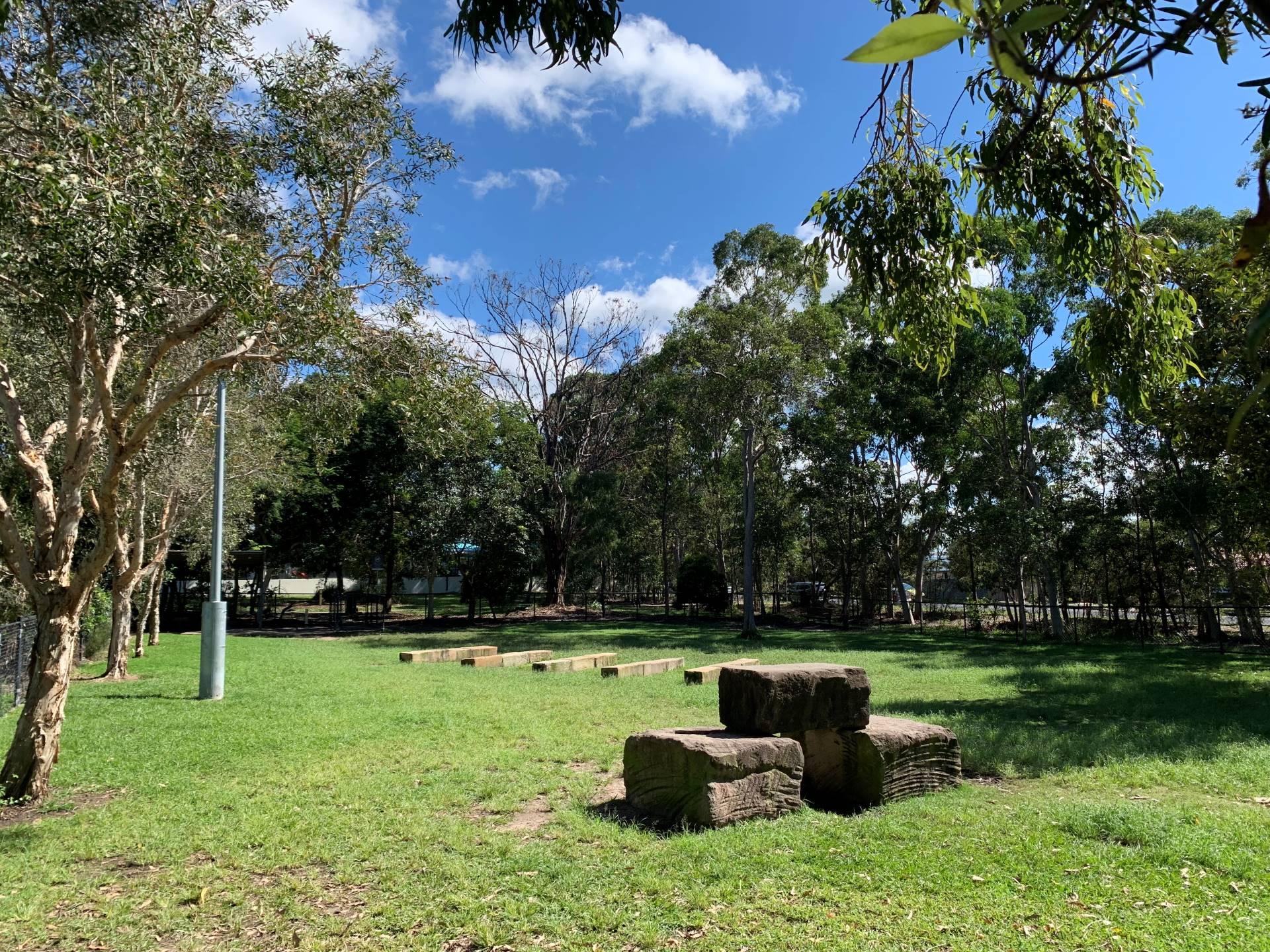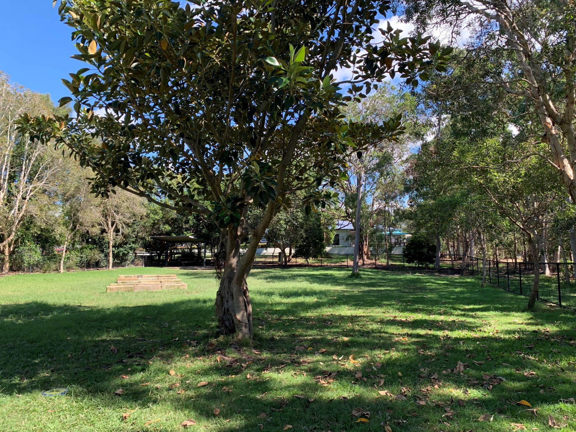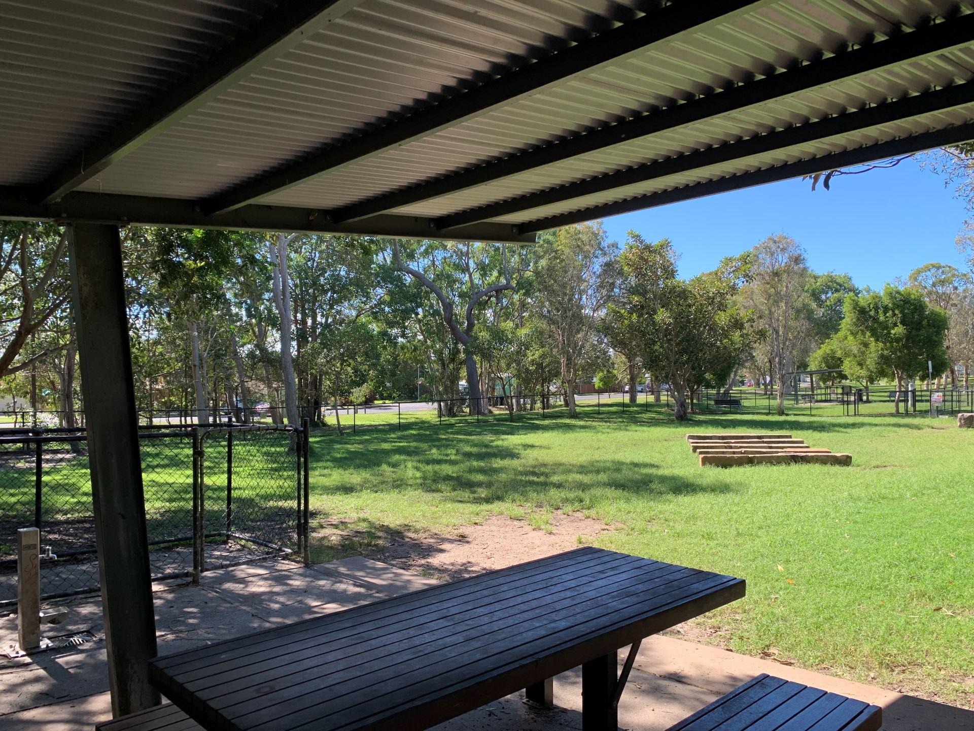 The dog off leash park is located between Kalana Road and Beerburrum Street. There are two separate off leash areas, one for small dogs and the larger area, caters for medium to large dogs. There is a shelter and natural dog agility equipment in the larger of the two areas.